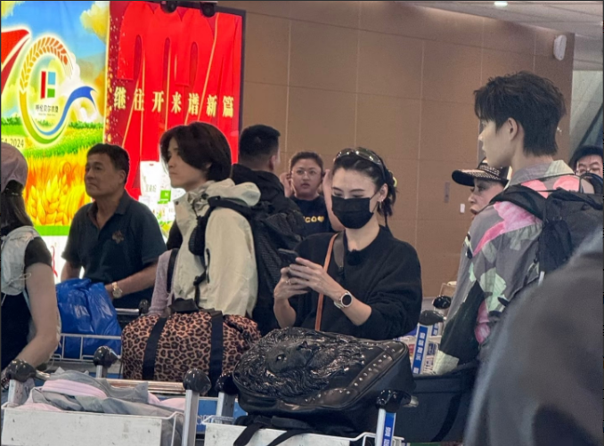 天啊!呼伦贝尔机场偶遇张柏芝和刘晓庆在等行李,45岁张柏芝戴着黑色口罩,穿着黑色