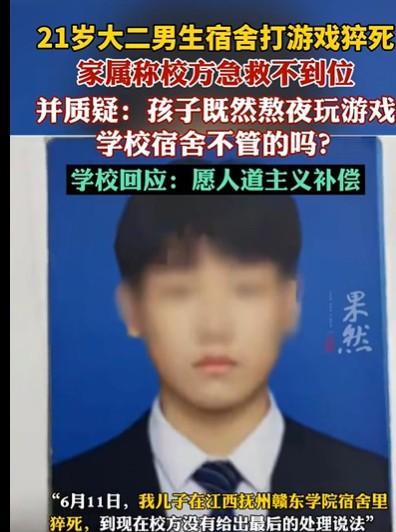 江西抚州,大二男生一下课,就奔回宿舍玩游戏,玩着玩着却猝死了,学校联系家长,家长