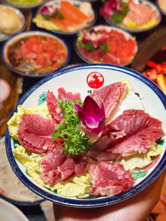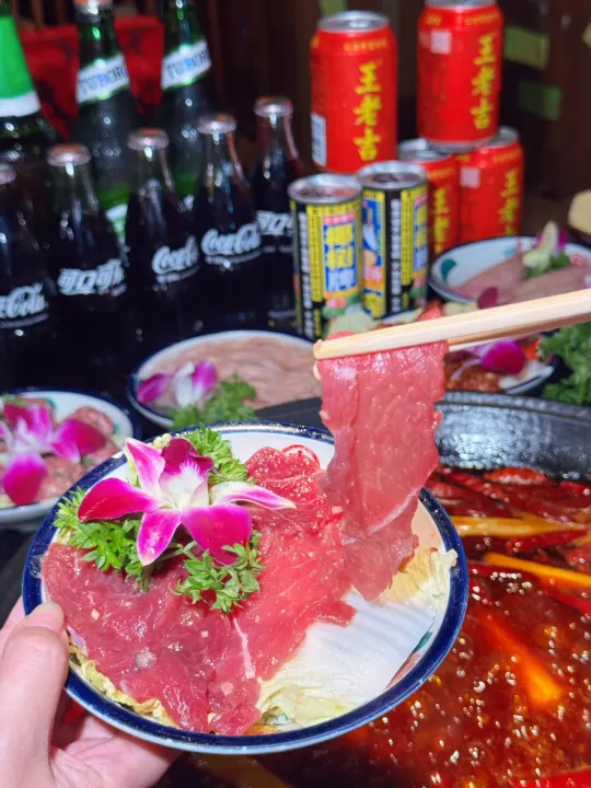 ✅吊龙鲜牛肉:这肉纹看得清清楚楚,稍微涮几下,裹满红油,又弹又嫩,满嘴肉香!