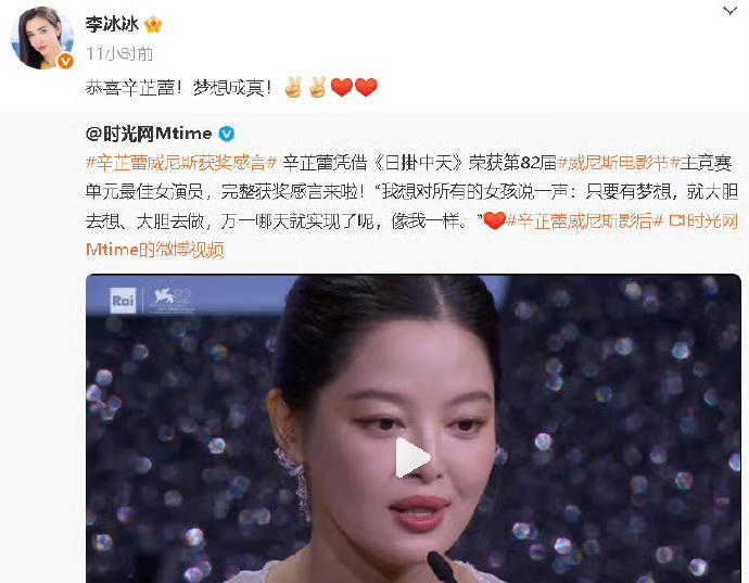 这下是真的出名了, 认识的熟悉的, 不认识的不熟悉的都来给辛芷蕾祝贺了。这娱乐圈