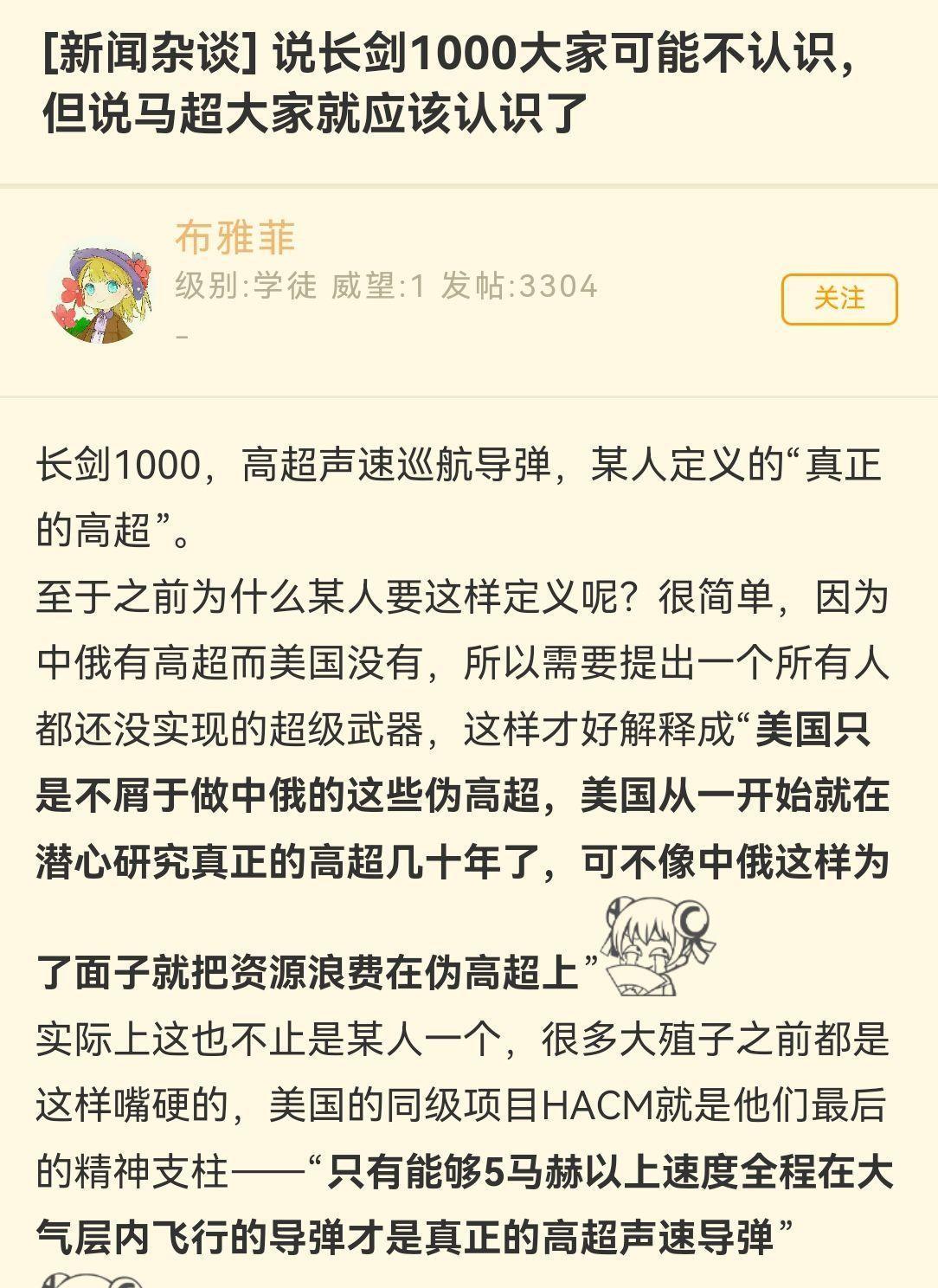 乘波体也能算高超?双锥体也能算高超?都是伪高超而已,我大美利坚PPT上的才是……我超,老中你怎么三款都有? 以前我们有高超(乘波体和双锥体)而美国没有的时候,一些人就开始重新定义高超了,说必须是能够“全程以5马赫的速度在大气层内飞行”的才是真正的高超音速武器,比如美国正在研发的HACM项目。 其实就是使用超燃冲压发动机的高超音速武器,然后我们的长剑-1000就出来了,现在我们是乘波体、双锥体以及超燃冲压发动机三款都齐了! #高超音速武器# #高超音速导弹#