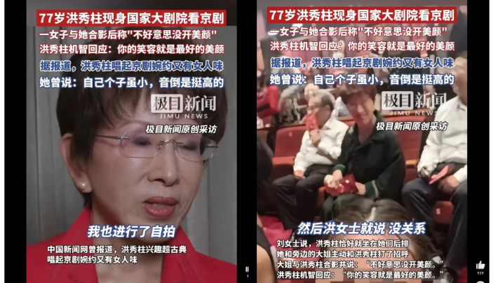 原以为洪秀柱看了93大阅兵就会马上回台湾,万万没想到都第三天了,网友还在国家大剧院看见她去看京剧。 洪秀柱瞧见网友拍照,笑得那叫一个亲切,一点不挑网友开没开美颜,真随和。她这辈子没儿没女,却把满心的温柔与牵挂,都给了两岸同胞,她心底最炽热的梦,就是盼着海峡两岸能大一统。 她一生跌宕,在复杂的台湾政治场域里,被孤立过,被打压过,但她始终不弯腰,始终怀揣统一信念。洪秀柱用她的真诚与坚持,给咱诠释了啥叫大格局,啥叫民族大义。她就像两岸间一束暖光。大家说,这样的洪秀柱,值不值得我们点个赞,给她竖个大拇指呀?