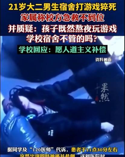江西抚州,大二男生一下课,就奔回宿舍玩游戏,玩着玩着却猝死了,学校联系家长,家长