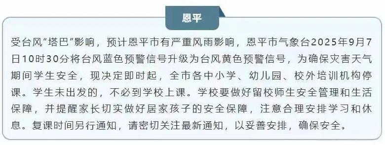 刚开学,这一地区紧急停课! 昨天,广东地区发布了紧急通知,要求中小学校及幼儿园,还有培训机构一律停课。 因为,台风“塔巴”将于8日在广东登陆,局部地区有特大暴雨。如此恶劣天气,安全不容忽视,为了孩子停课无可厚非。 可是,幼儿园的孩子,小学生独自在家,父母难以安心。尤其是,老人不在身边,能不能留一个人照顾孩子呢? 好友!对此,你有什么想法请在评论区留言好吗?#分享城市新鲜事# #秋日生活打卡季# #广东学校紧急停课#