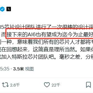 马斯克放大招!特斯拉 AI5 芯片完成评审,算力达 2500TOPS,是上代 5 倍,碾压英伟达 Thor-X 的 2000TOPS。采用台积电 3nm 工艺,2026 年量产上车,双代工厂保障供应。马斯克称将支撑全自动驾驶,剑指芯片霸权,弃用 Dojo 全力攻坚。
