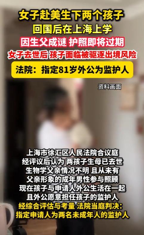 上海,女子赴美生了2个女儿,回国后,孩子们跟随外公生活,后来女子因病去世,可除了她,没人知道孩子们的亲生父亲到底是谁,究竟谁来担任孩子监护人成了难题,眼看孩子即将护照过期,可能会被逐出境,81岁的外公出面申请成为监护人,可过程远没有想象中顺利… 据杭州网9月7日报道,女子是个很有主见的女性,大概是在2015年和2017年,她先后在美国生下了两个女儿。 奇怪的是,两个孩子的出生证明上,父亲那一栏都是空着的,这事儿成了个谜,女儿不说,家里人也不好多问,孩子出生后不久,就跟着妈妈回到了上海,住进了外公家。 对于这两个小家伙来说,上海的弄堂就是她们的童年,外公的怀抱就是她们最温暖的港湾,她们在这里上学、交朋友,除了那本美国护照,生活的一切都和身边的小伙伴没什么两样。 日子就这么一天天过着,谁也没想到,意外来得这么快,2024年的夏天,孩子的妈妈被查出了恶性肿瘤。 尽管她积极配合治疗,但命运还是开了个残酷的玩笑,就在大家都以为她快要出院的时候,病情突然恶化,人就这么走了,母亲的离去,让整个家都塌了。 王大爷白发人送黑发人,可他顾不上悲伤,因为两个年幼的外孙女还眼巴巴地看着他,她们失去了妈妈,成了没有法定监护人的孩子。 更要命的是,大外孙女的护照眼看就要在2025年9月3号到期了,没有监护人签字,护照就没法续,一个过期的护照,意味着孩子在中国的合法身份就没了,随时可能面临被遣返的风险。 一想到两个从小在身边长大的孩子可能要被送到一个陌生的国度,王大爷心急如焚,他不能让这种事发生! 于是,在2025年3月,这位81岁的老人做出了一个决定:他要申请成为外孙女的监护人。 他找到了律师,把一堆材料递交到了法院,本以为这是顺理成章的事,可没想到,第一步就卡住了,法院的工作人员说,材料不充分。 最关键的问题是,法律规定,父母是孩子的第一顺序监护人,现在只知道母亲去世了,父亲呢?只要有一丝可能存在父亲,法院就不能直接把监护权判给外公。 王大爷当时就懵了,女儿生前对这事儿嘴巴严得很,他上哪儿去找这个素未谋面的“女婿”?他翻箱倒柜,把女儿的遗物找了个遍,希望能找到一点蛛丝马迹,结果什么都没有。 就在王大爷一筹莫展的时候,事情似乎变得更糟了,法院在调查孩子的小学入学档案时,竟然发现了一份带着“父亲”名字的出生证复印件,还有一份结婚证复印件。 这下麻烦大了,难道孩子真有父亲?王大爷急得吃不下睡不着,他反复回忆,也想不起来女儿跟哪个男人走得近,就在他快要绝望的时候,检察院的介入给事情带来了转机。 检察官们审查了案子,认为这关系到未成年人的权益,决定支持王大爷起诉,帮着他一起想办法,在检察院的帮助下,他们顺着学校档案里的线索,找到了那个出现在出生证复印件上的“父亲”。 结果,这位男士一听来意,连连摆手,他说自己跟孩子的妈妈只是普通朋友,当年她为了孩子入学方便,急需一个父亲的名字来填写资料,他看她一个单身妈妈不容易,就好心把自己的信息借给她用了。 至于孩子的亲生父亲是谁,他根本不知道,这个“乌龙”总算是澄清了,为了把事情调查得更清楚,法院还请来了专业的“家事调查员”。 调查员走访了邻居、学校老师和亲戚,邻居们都说,从没见过这个家有陌生的男人出入,老师也反映,两个孩子在作文里写的家人,永远都只有妈妈和外公。 亲戚们则回忆说,孩子的妈妈生前确实提过,想通过试管婴儿之类的医学手段,自己一个人把孩子养大。 所有的证据都指向一个可能性:这两个孩子,很可能就是通过辅助生殖技术出生的,根本就没有法律意义上的“父亲”。 难题一个接一个地解决,现在就剩下最后一个问题了:81岁的王大爷,身体和经济状况能当好这个监护人吗? 在法庭上,王大爷坚定地表示:“这两个娃,是我看着长大的,现在她们的妈妈不在了,我就是她们唯一的亲人了,只要我还有一口气,就不能让她们没人管。” 家事调查员的报告也证实了这一点,报告里说,王大爷虽然年纪大了,但身体硬朗,思路清晰,有退休金,经济上能负担孩子的生活。 更重要的是,两个孩子从小就跟外公特别亲,祖孙之间的感情非常深厚,把孩子留在他身边,继续在熟悉的环境里生活学习,是对她们最好的选择。 最终,在距离护照过期只剩下一天的时候,法院当庭宣判:指定王大爷为两个孩子的合法监护人。 拿着那份盼了许久的判决书,王大爷紧紧抱着两个外孙女,眼泪再也忍不住了。 这件事也提醒了所有人,在规划自己的人生时,一定要考虑到各种意外,提前做好法律上的安排,比如立下遗嘱、指定意定监护人,这不仅仅是对自己负责,更是对你所爱的人最深沉的保护。 信源:杭州网2025-9-7——女子赴美生下两个孩子,她去世后在上海上学的孩子面临被驱逐出境风险。法院:指定81岁外公为监护人
