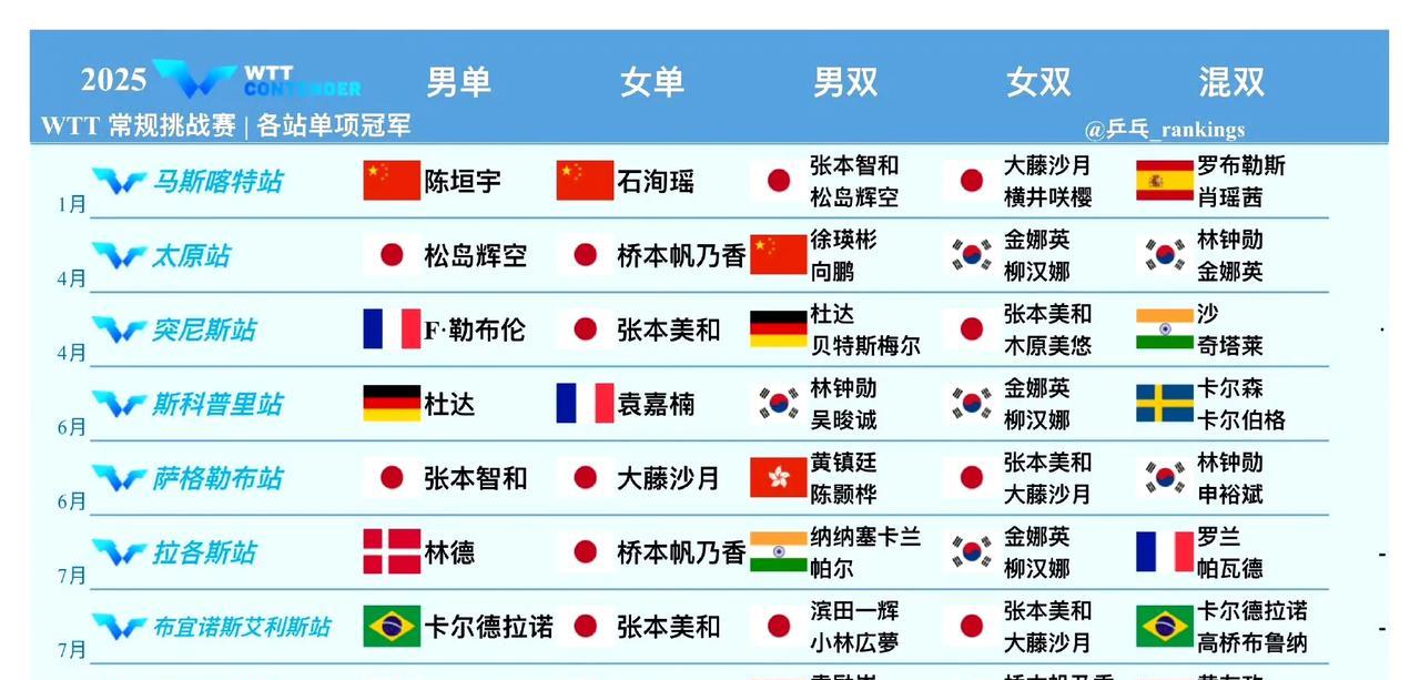 张本美和都要靠边站了! 继太原挑战赛之后,桥本帆乃香再次对中国选手“一穿4”夺冠,单打双打都有收获冠军,八站常规挑战赛她拿了3个单打冠军,对国乒威胁最大的张本美和也仅拿到两个,如今除了孙颖莎和王曼昱,谁见了都要头皮发麻,心里打怵。 用不入流的打法不断战胜国乒主力,桥本帆乃香让日本人非常兴奋,日本媒体都在炫耀“桥本轻松战胜中国选手”。日本从早田希娜、伊藤美诚、张本美和等都曾给国乒带来巨大麻烦,但是桥本近期对国乒19场仅负两场,胜率高达89%!很显然桥本的威胁最致命,国乒除了孙颖莎,就连王曼昱要取胜都非常费力! 国乒可以设计一个激励规则,想成为主力,必须战胜桥本帆乃香,集体研究桥本帆乃香,将击败她作为第一要务!