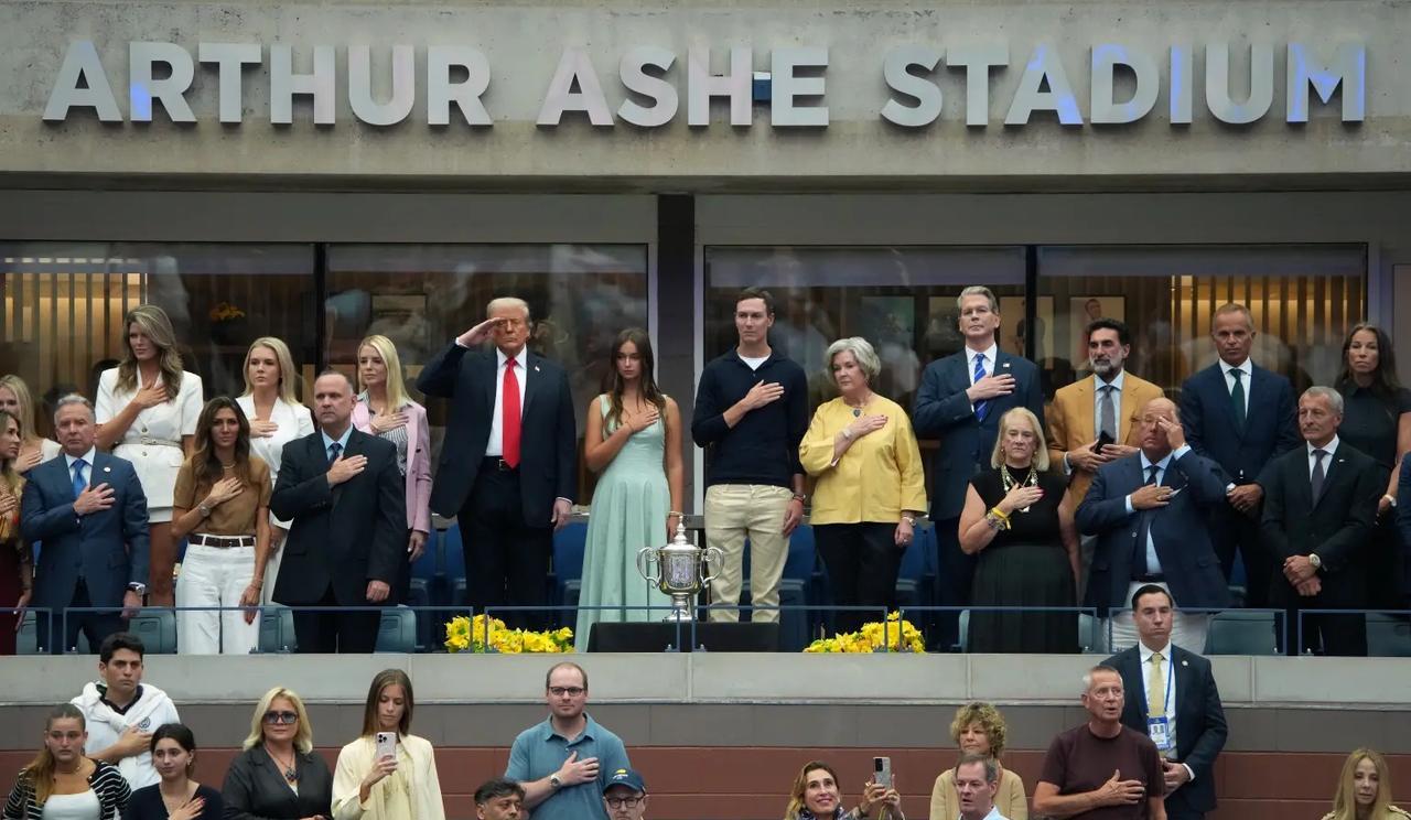 特朗普十年来首次亮相出席美网男单决赛,欢呼和嘘声四起。 特朗普周日出席观看了在皇后区法拉盛举行的美国网球公开赛男子网球决赛,比赛不得不推迟近50分钟,这样球迷才能通过加强的安保。 总统在下午1点45分左右到达亚瑟·阿什体育场,比备受期待的对决预定下午2点开始时间提前15分钟,当他从套房里出来挥手时,人群中爆发出了轰鸣声。 但后来,当Jumbotron在唱国歌时和比赛之间切断时,嘘声此起彼伏。 公开赛在一份声明中表示:“由于安全措施到位,为了确保球迷有更多的时间进入座位,我们推迟了开始时间。” 球场明星辛纳Jannik Sinner和阿尔卡拉斯Carlos Alcaraz之间的比赛终于在下午2点48分左右开始——比原计划晚了48分钟。 特朗普带着他的政府的几位成员观看了比赛,包括美国司法部长帕姆·邦迪、白宫幕僚长苏西·怀尔斯、总统特别助理林赛·哈利根、中东特使史蒂夫·威特科夫和财政部长斯科特·贝森特。 随行的还有的女婿库什纳Jared Kushner和孙女Arabella、他的长期助手Margo Martin和劳力士首席执行官Jean-Frederic Dufour。 特朗普在公开赛上的亮相甚至在他踏入体育场之前就引起了争议,当时USTA建议广播公司不要在电视上播放观众对总统到来的嘘声。