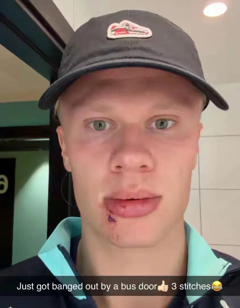 哈兰德的嘴唇被车门夹伤,他被缝了三针,所以不知道哈兰德能否出战9月14日的曼市德