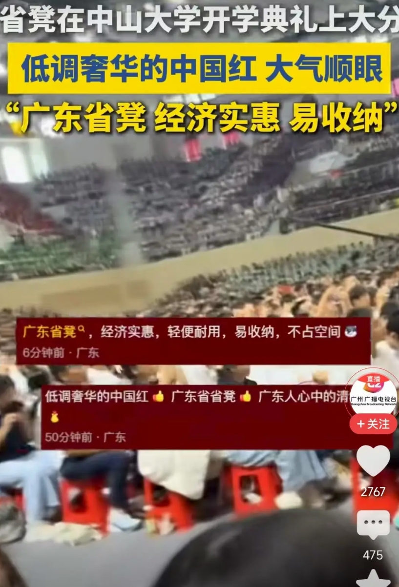 中山大学在这次的开学典礼上,应该是吸收了某个学校的经验,在凳子的选择上,下了大功夫,