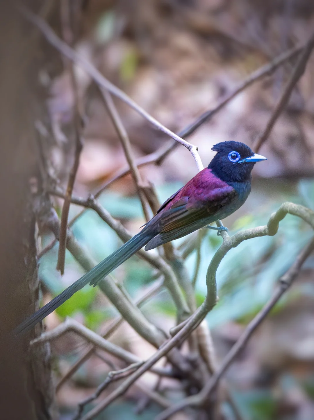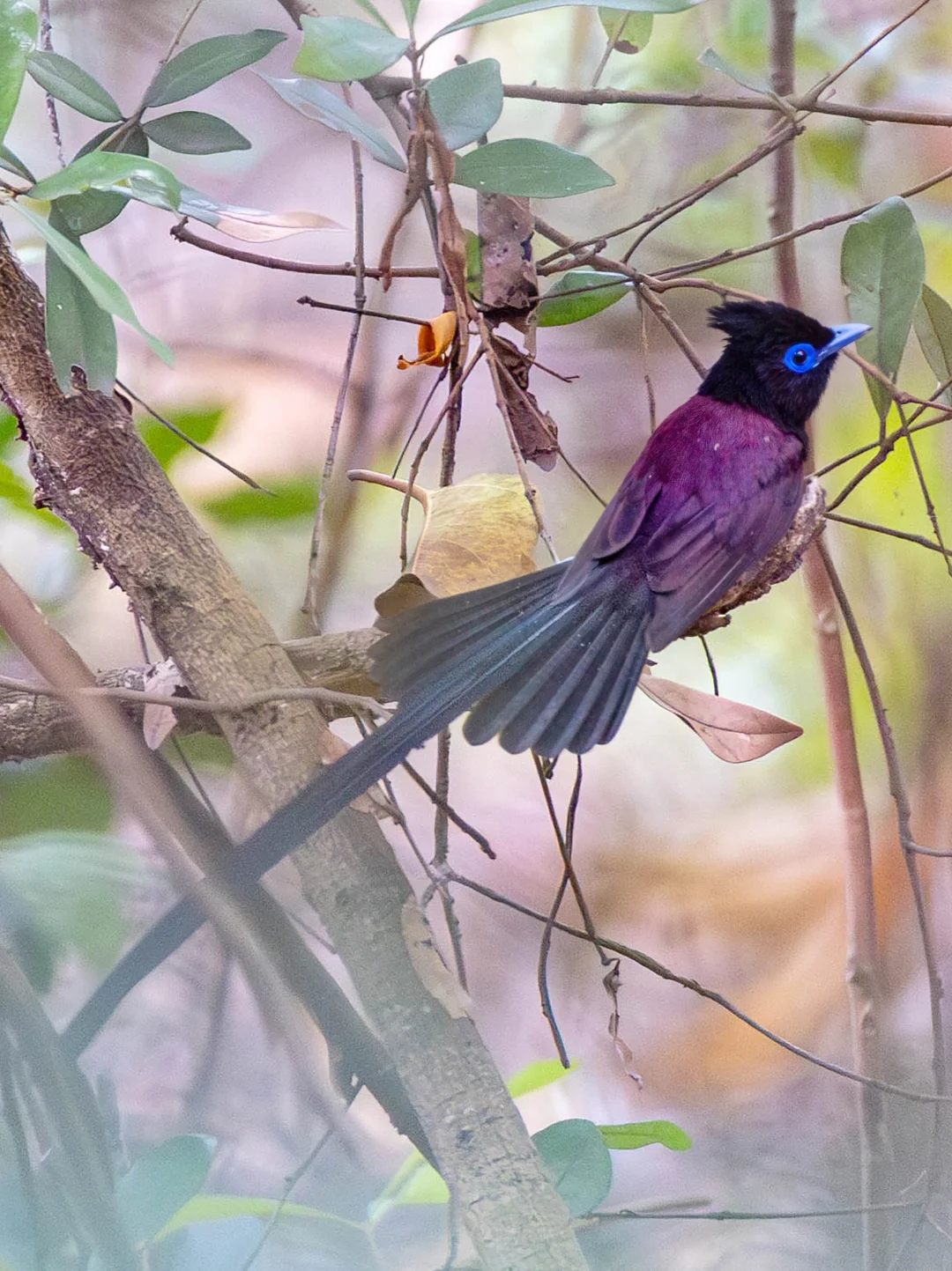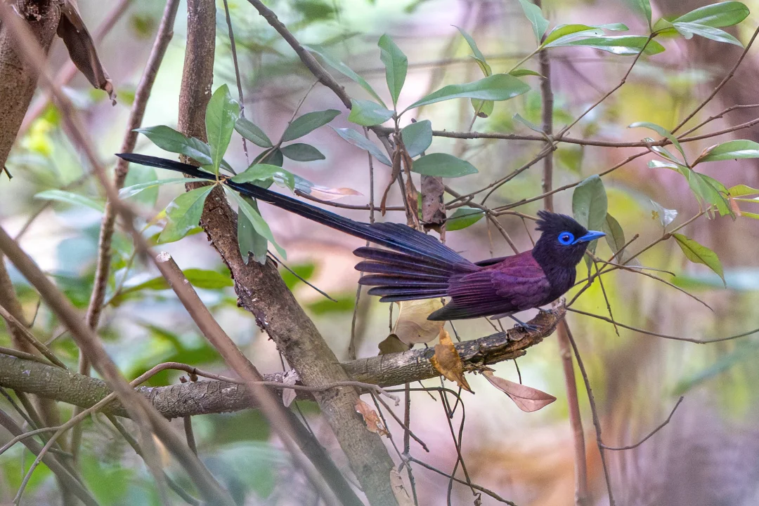 紫寿带,Black Paradise Flycatcher,雀形目王鹟科寿带属。