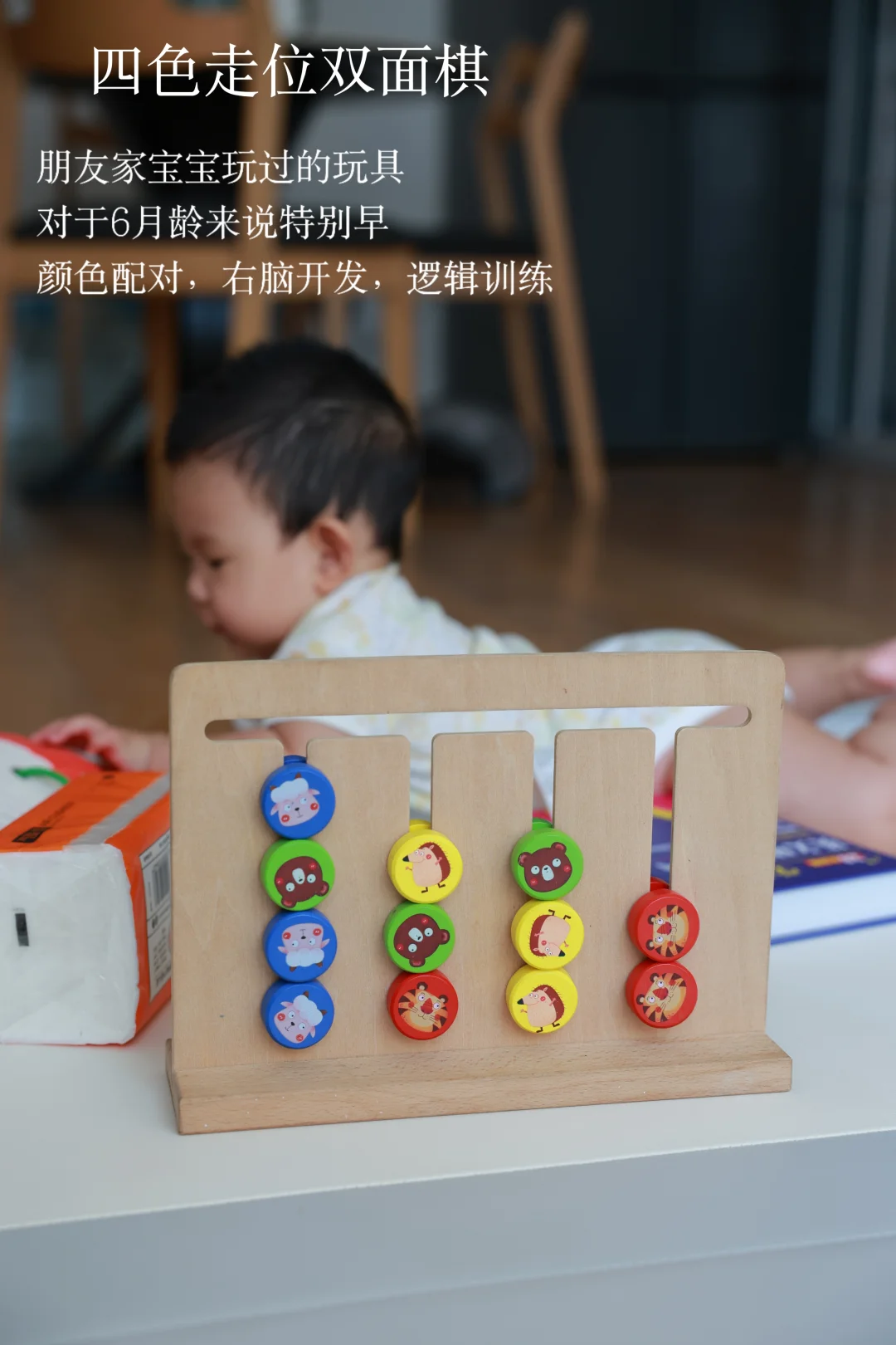 🎨四色走位双面棋 蒙氏教具经典款 推动彩色棋子沿轨道滑动 培养逻辑思维和颜色认知 双面设计难度不同 玩到3岁都没问题
