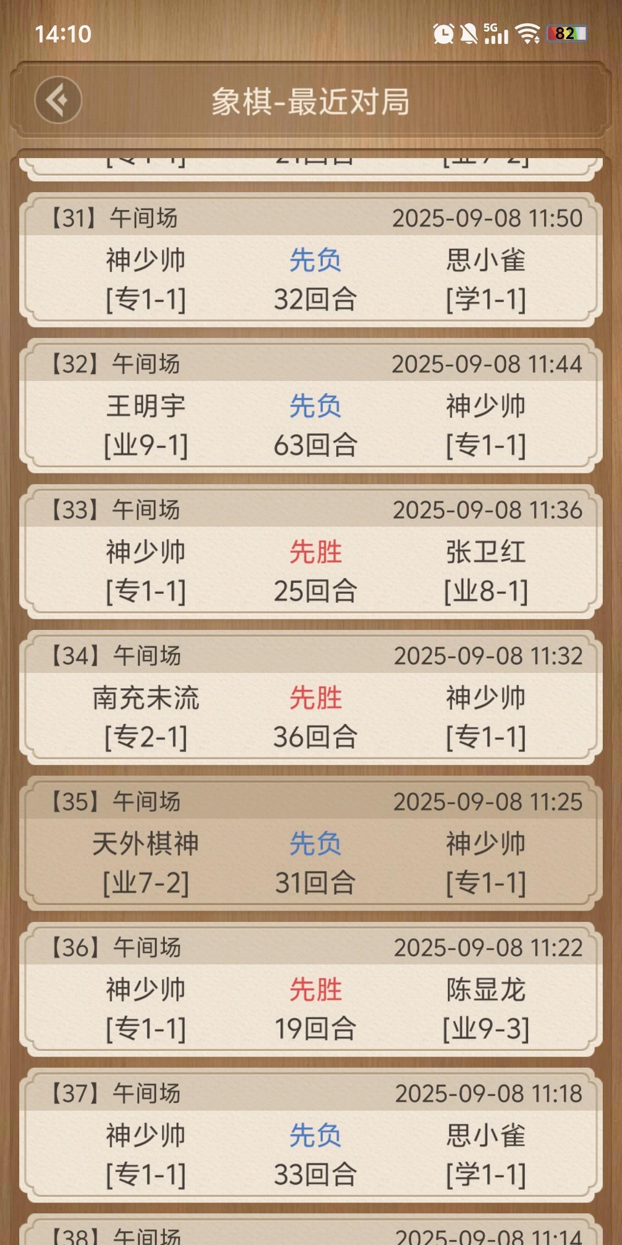 2025棋王赛第49场,神少帅亚军,冠军是软神! 战况: 今天26胜5平9负! 这9盘棋,有5盘输给软件!另外4盘进攻势大意,或者中套路,一时应对不及,翻车! 发挥的还行,就是第一名神人也,一个人102分,最后一盘,实在不好意思赢我了,连续两次求和,开始我没同意,后边实在没法赢,就和了! 有她在,谁能夺冠?都不是一个级别,没一个人能挡住她的攻势,太犀利了,随便走都能赢,至少不会输,颠覆棋理,高手遇到他都怀疑人生,鬼见愁! 小结: 调整好心态和状态,今晚再战,加油! #头号创作者激励计划#