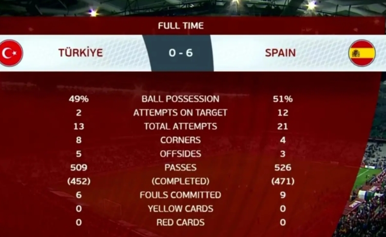 土耳其这套阵容,若放在西甲,起码能处于中上游水平。可感觉西班牙都没怎么发力,就被