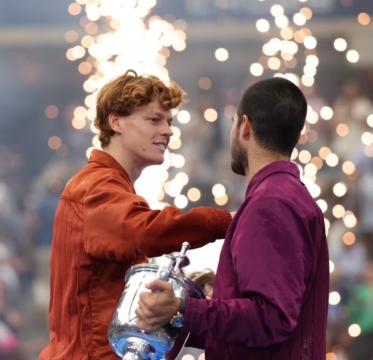 要磕这两人了,辛纳满脸心服口服,对阿卡说“你好棒”。阿卡则感慨:“我跟你相处的时间比和我家人都多。”这话出自恋家的西班牙人之口! 辛纳大致是花式夸赞了阿卡一番,还说了句 “I cannot do better”。头一回见他如此认输,还笑着看着阿卡领奖。昨天药娃满脸委屈、无奈、悲伤又不服气,萨巴领奖时她眼神四处乱瞟。 明年两人再商议商议吧,互放水一水,给辛纳个法网冠军,给卡子个澳网冠军,双双达成全满贯。到时候在洛杉矶再拼个你死我活,看谁能实现金满贯!