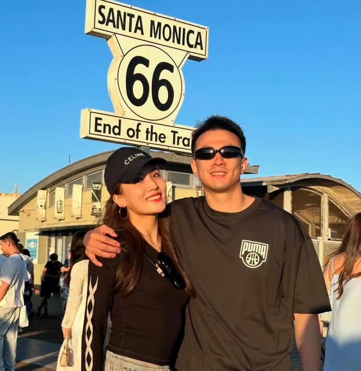 赵继伟享受休闲假期,带妻子闪现美国洛杉矶。面对湖人主场球馆前的科比纪念雕像,他化