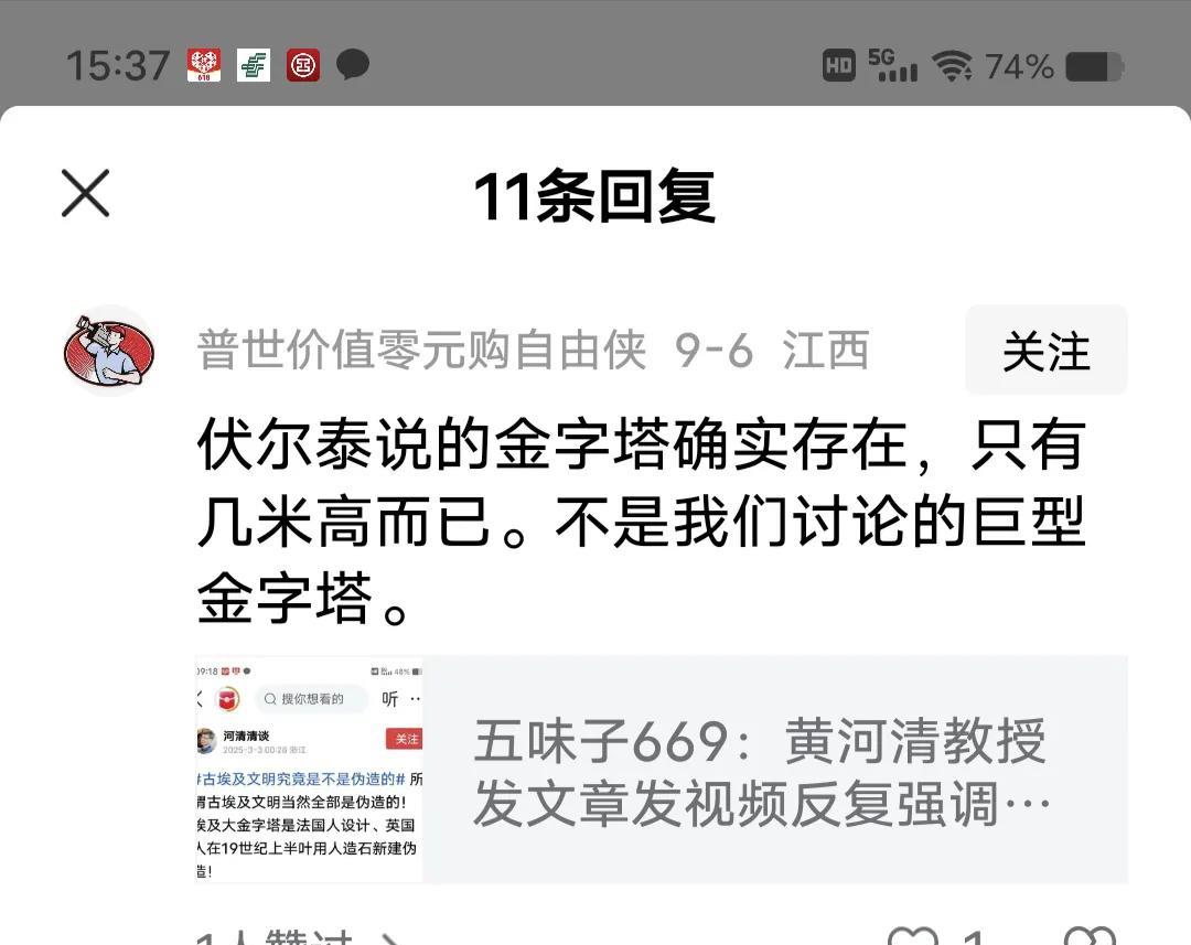 写了一篇让法国大思想家伏尔泰与黄河清教授PK的小文,给伪史论者们出个难题,让他们选择是支持伏尔泰?还是支持黄河清?这两位大侠一个是西方的西方伪史论者,一个是东方的西方伪史论者。是同行。分歧是伏尔泰说古埃及有金字塔,黄河清说是后来伪造的。 西方伪史论们还真是能扯,啥也难不住这些人,个别的还真能矫情。你都把他逼到死胡同里了,他也能从墙缝钻出来。说黄河清说的是大金字塔,伏尔泰说的是小金字塔,说我偷换概念。 古埃及有小金字塔就不算古代文明?非有大的金字塔才能算古代文明?好吧,你们说了算。 有位大哥居然说伏尔泰说的是几米高的小金子塔!那伏尔泰在《风俗论》中说的是小金字塔吗?把原话拷贝这里大家看。 伏尔泰这样写道:他们建造金字塔耗时甚久,花费巨大,需要把全国一大部分人和大批外来的奴隶长期用于这些巨大的工程。这些工程是凭借专制、虚荣、奴役、和迷信建造起来的。只有一个专制的国王才能这样迫使人们去做难以办到的事。以英国为例,今日的英国比当年的埃及更为强大,然而一个英国国王能用全国的力量来建造这样的建筑物吗? 看到伏尔泰的描述了吗?耗时久,花费大,需要全国一大部分人,外加外来奴隶长期做的巨大工程,能是小金字塔吗? 伏尔泰这一段文字最后一句,刚好就对应了黄河清教授说的话。黄河清教授说,这些金字塔是十九世纪上半叶英国人用人造石新建伪造的。而伏尔泰说英国国王不会用全国的力量来建造这样的建筑物。 最可笑的是有些西方伪史论者不知“行情”,指责我借助洋人打压中国教授。殊不知正是西方伪史论者们把伏尔泰当成西方伪史论先祖,常常拿出来说事,我才写了这些让他们看。在“懂行”的西方伪史论那,伏尔泰是他们一伙的。谁打压谁啊?是内部纠纷好吗。 伏尔泰对金字塔的作用也做了如下阐述:古埃及人相信人死1000年后,灵魂将返回躯体。所以尸体必须保持1000年不腐烂,不然灵魂回来无处安家。因此,埃及人细心的给尸体涂上防腐香料,然后藏入密闭的金字塔之中,保证尸体的完好无损。他们这种做法非常有效,尸体实际保存的时间比他们预期的要长。所以我们今天还能看到4000多年前的埃及木乃伊。尸体保存的时间和金字塔一样的长久。