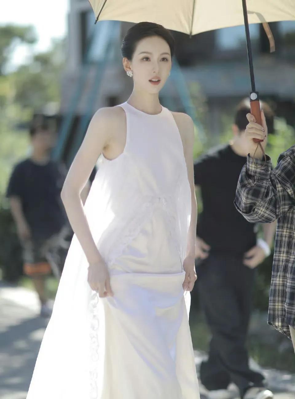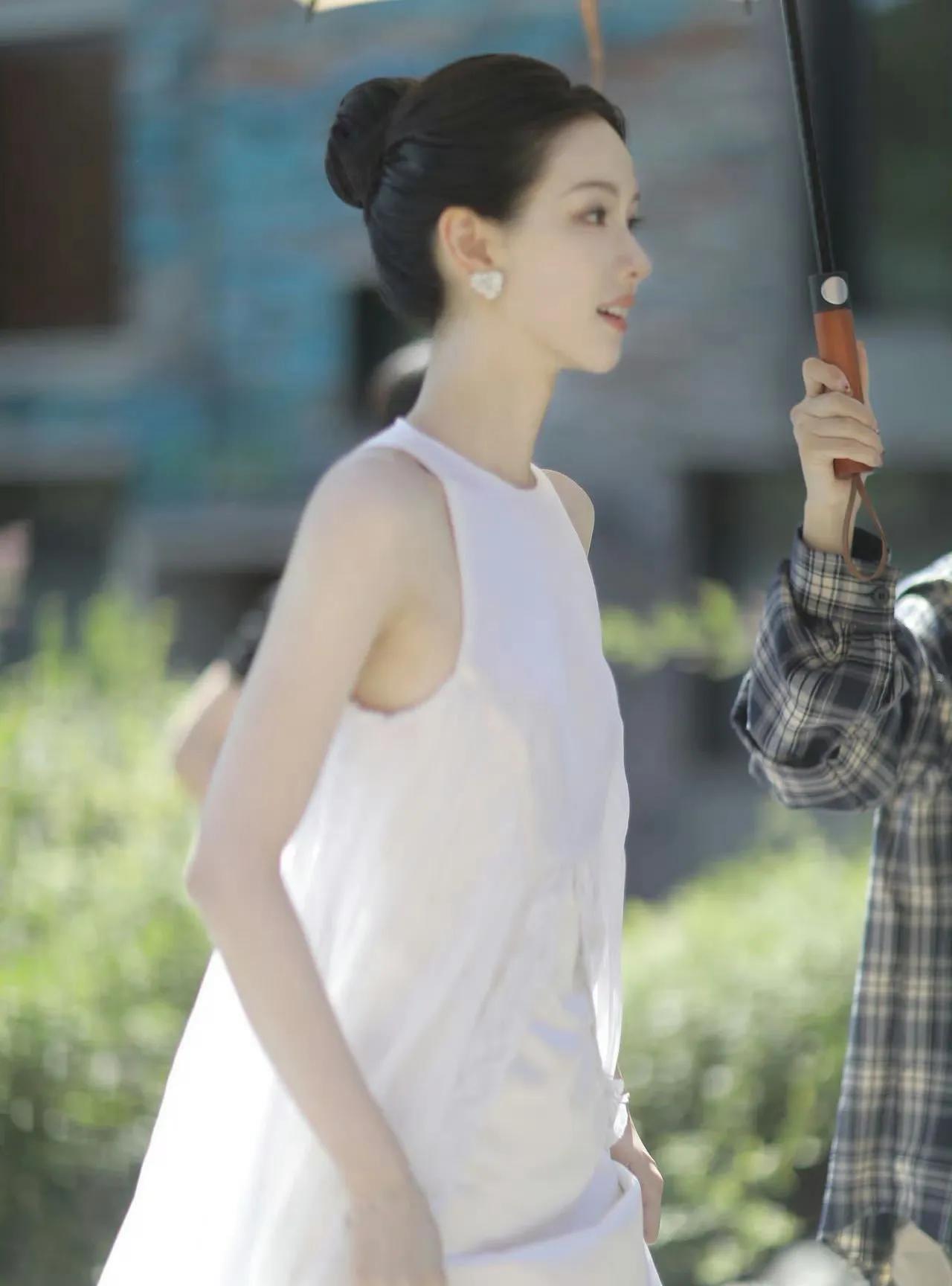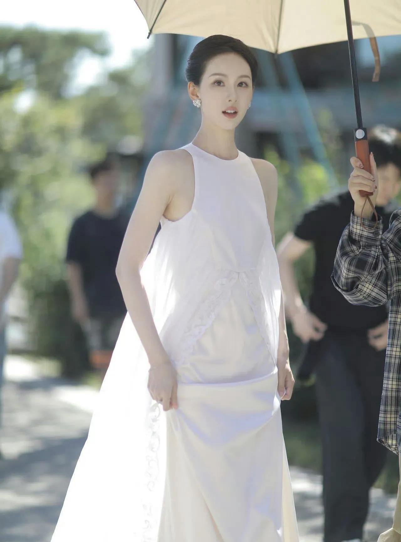 陈都灵又出路透神图! 她真的好适合这种素净的打扮! 全身上下,只一袭无袖白裙,