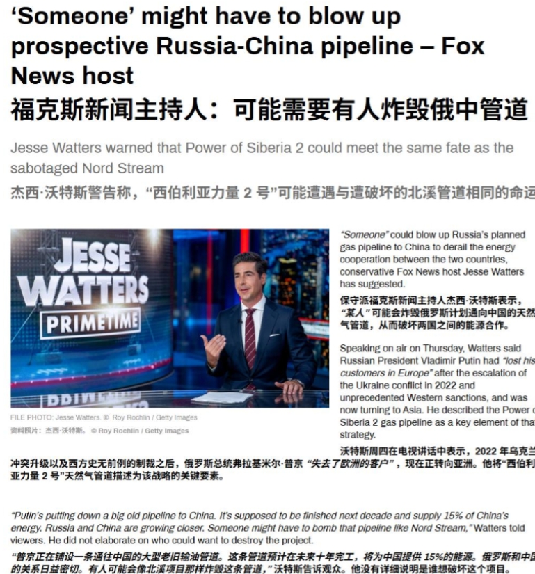 首先,这管道是陆上管道,经过中国、俄罗斯、蒙古三个国家,沿线的安全防护做得很严,想搞破坏比炸海底的北溪管道难多了。