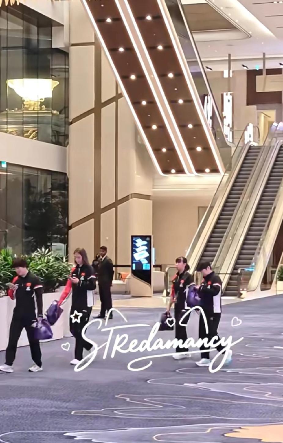 国乒选手亮相澳门晚宴 9月8日晚,澳门冠军赛晚宴结束后,国乒选手们陆续现身。孙颖莎、陈熠等手中都提着蓝色小包,王曼昱身旁,徐奕紧紧跟着,两人同框的画面很是显眼。看着选手们的身影,不禁更期待9月9日他们在赛场上的精彩对决啦! #澳门冠军赛晚宴# #国乒#