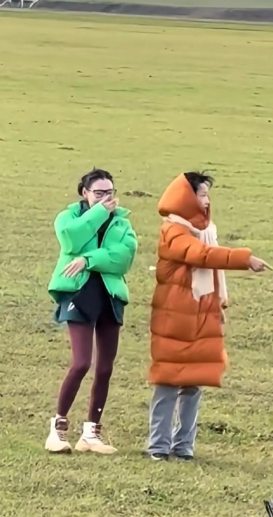 与张柏芝有17岁年龄差的何赛飞到底不抗冻,看她和张柏芝两人这是到了大草原了,张柏