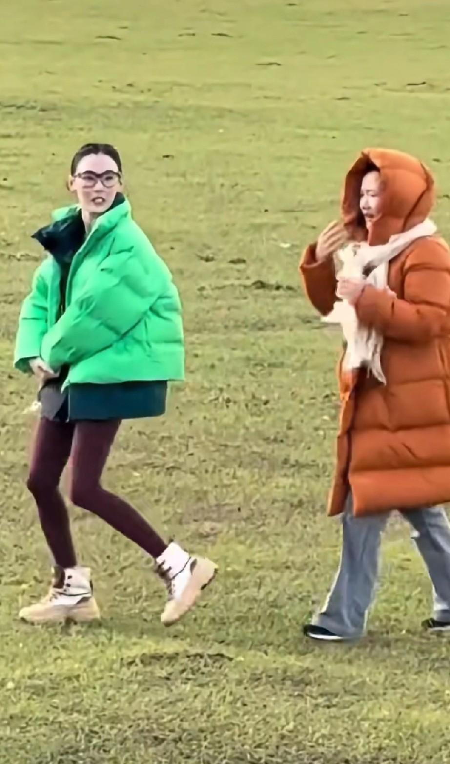 与张柏芝有17岁年龄差的何赛飞到底不抗冻,看她和张柏芝两人这是到了大草原了,张柏芝短款绿色羽绒服,深棕色瑜伽裤,高帮旅游鞋,而大17岁的何赛飞则穿上了长款土黄色大羽绒服,帽子也扣脑袋上了,脖子还系了围巾,看样子那里温度真的好像接近零度了,这对于两个从南方去的演员,只能说美丽动人,即便穿得这么多,但草原上可没啥遮挡,那风呜呜的肯定不小,看张柏芝冻的腿都站不直了。 看来挣钱都不容易,一下子从酷热的南方奔向近零度的草原,可真不是闹着玩的,尤其对于爱美还要保持形象的女演员们。天苍苍,野茫茫,风吹草低,但是没见牛和羊。