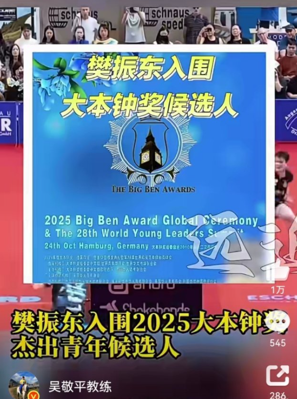 吴敬平教练好会说,好会夸樊振东啊。 对于樊振东入围大本钟奖,吴敬平教练表示,至此