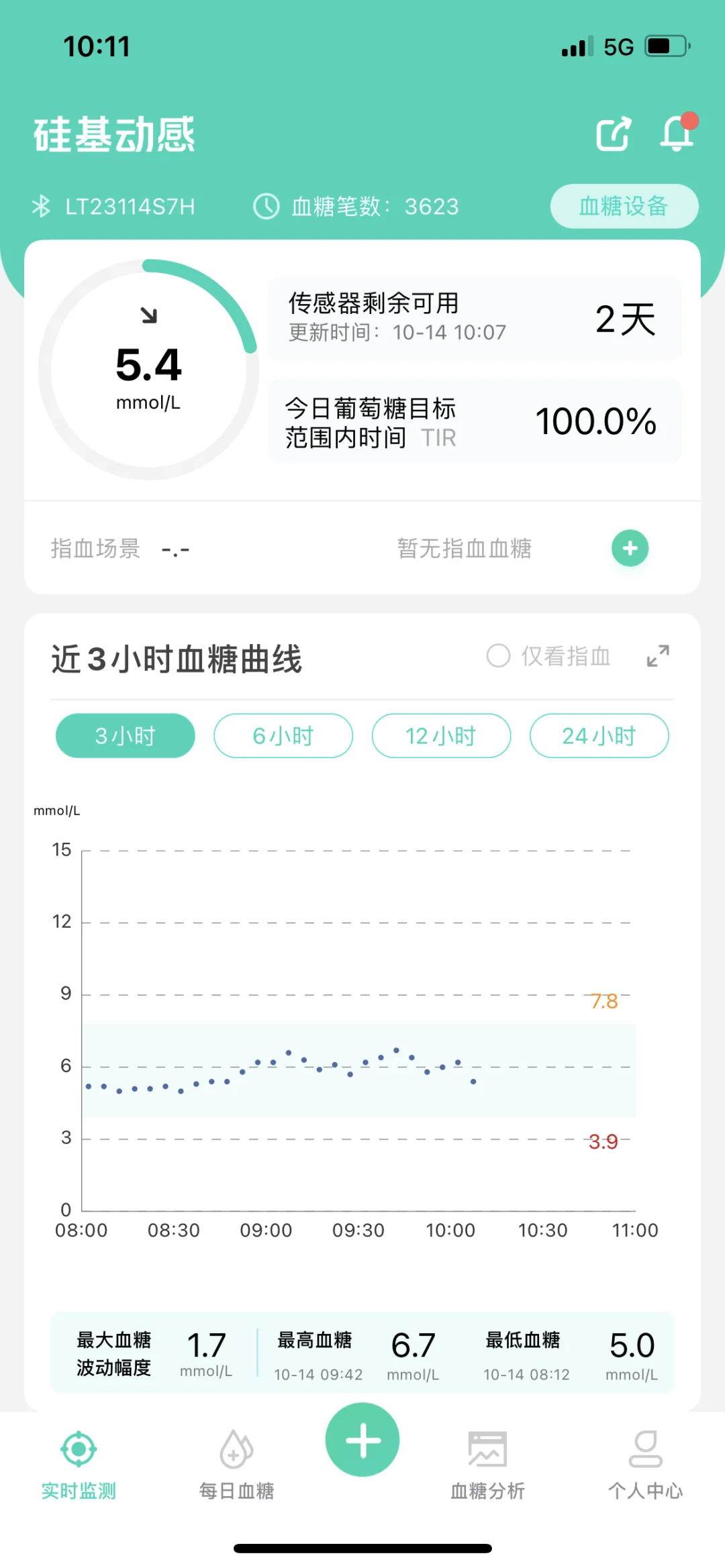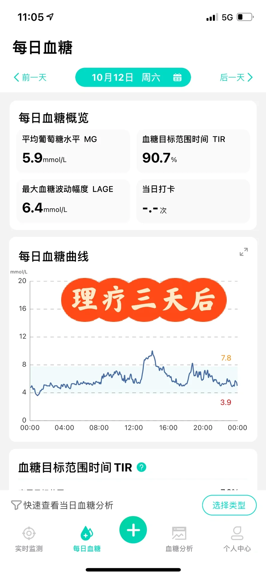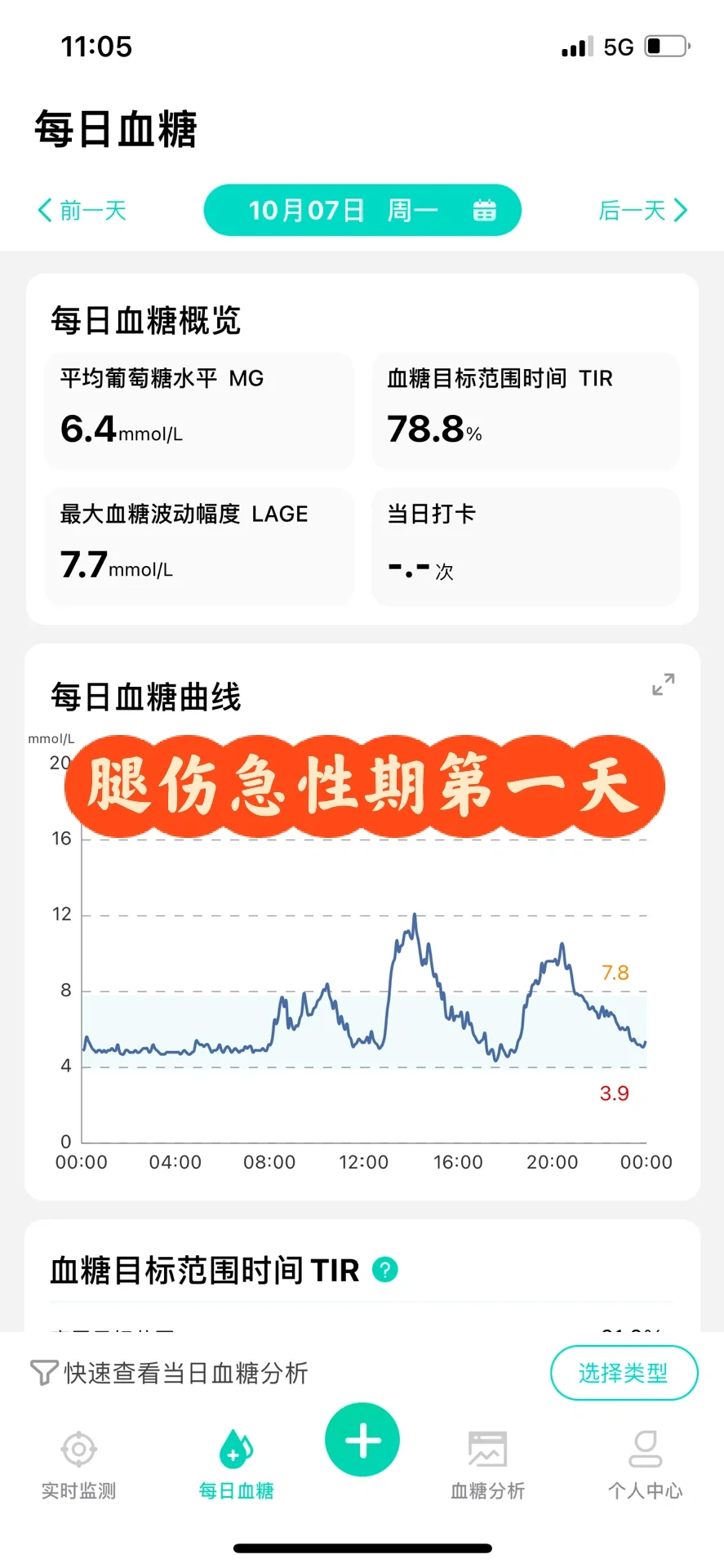 今日早餐血糖放图四了。急性腿伤连着生理期,这两天的血糖表现已经优于腿伤急性期血糖了,慢慢来吧。