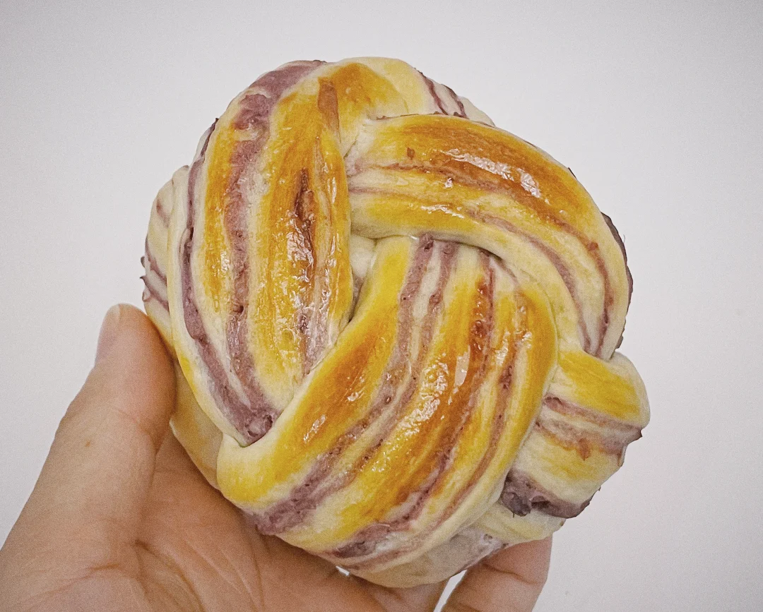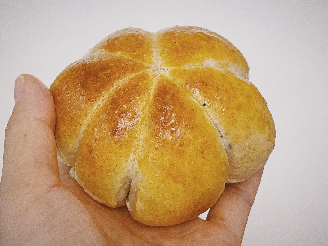 这几天腿好些了,早上又开始做面包了,翻花的芋泥面包,和翻车的南瓜紫米面包。