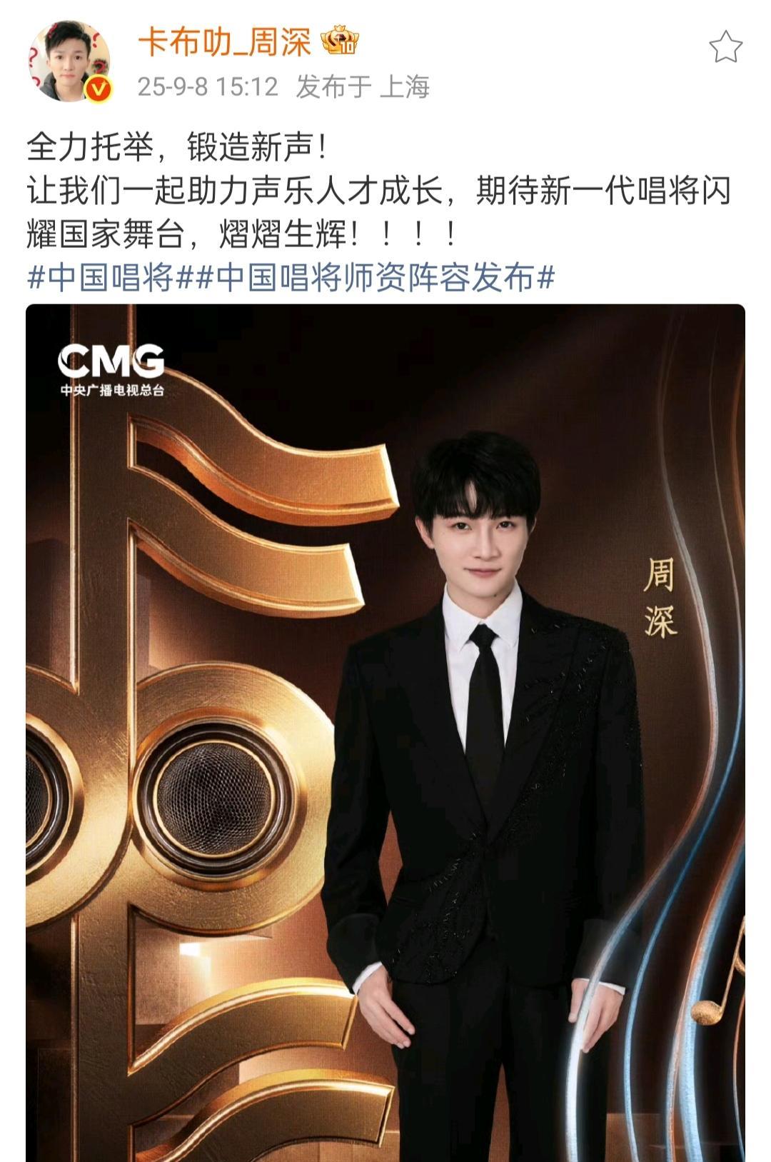 周深当过哪些节目的导师? 2019年《唱给世界听》,周深作为导师和音乐推荐人参加了爱奇艺推出的大型华语流行音乐海外真人秀节目《唱给世界听》,在节目中他还展示了英语和俄语的语言能力。 2021年《上线吧!华彩少年》,周深担任“上线官”(国风少年成长见证人),主要负责声乐指导与舞台点评! 2025年《中国唱将》,最年轻导师(唯一90后),与廖昌永、谭维维等艺术家共同选拔新声! #周深#