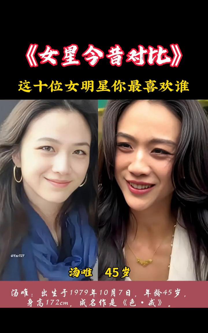 《女星今昔对比》,这十位女明星你最喜欢谁? ·汤唯:出生于1952年10月30日