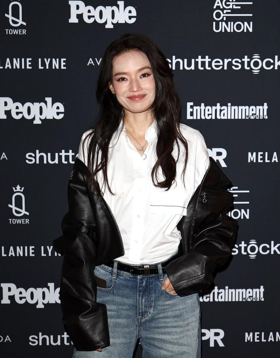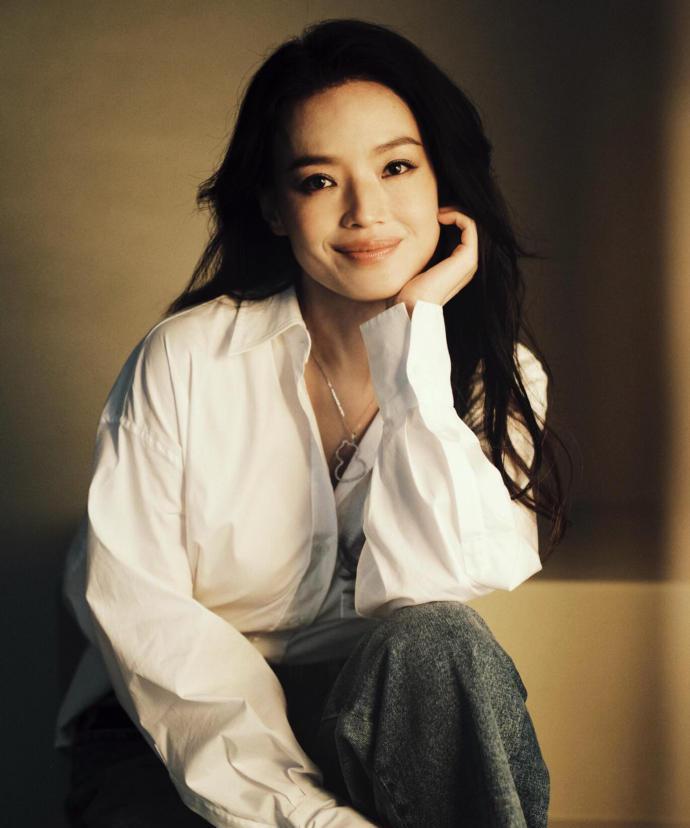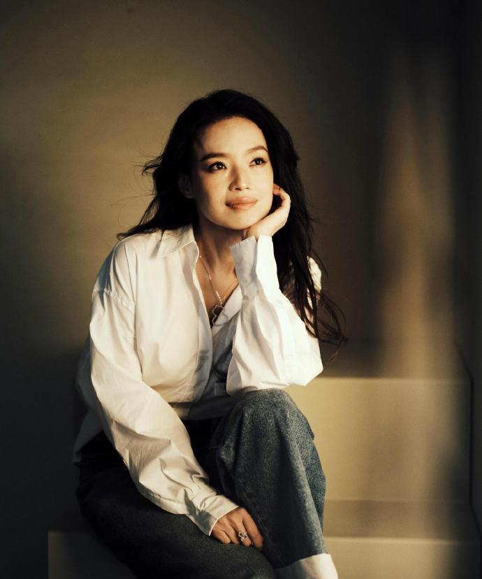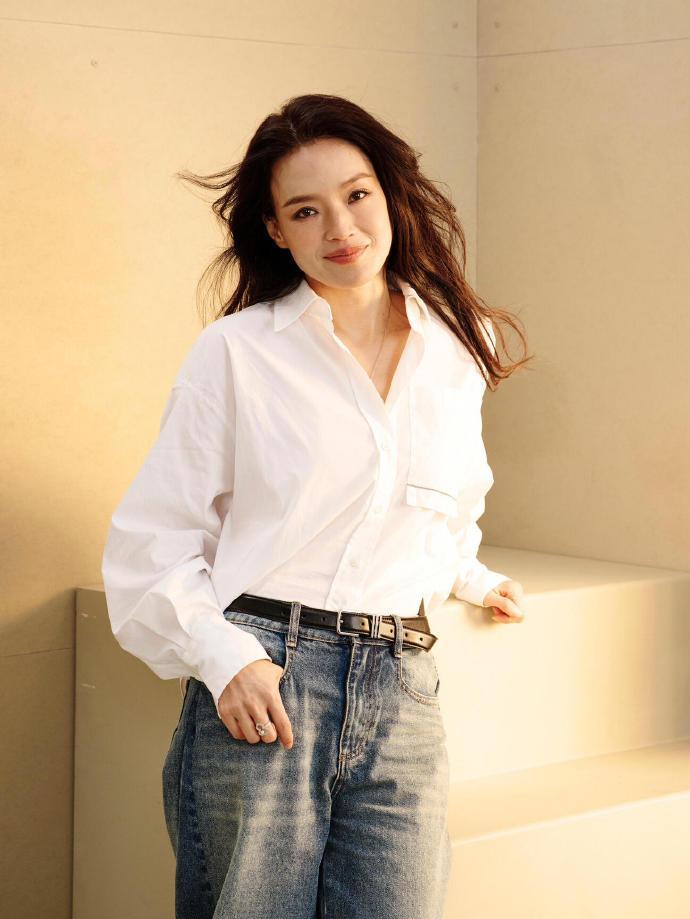 今日舒淇在宣传新片的时候搭配的很有潮流时尚气息,看上去也很迷人。 她里面穿白色衬