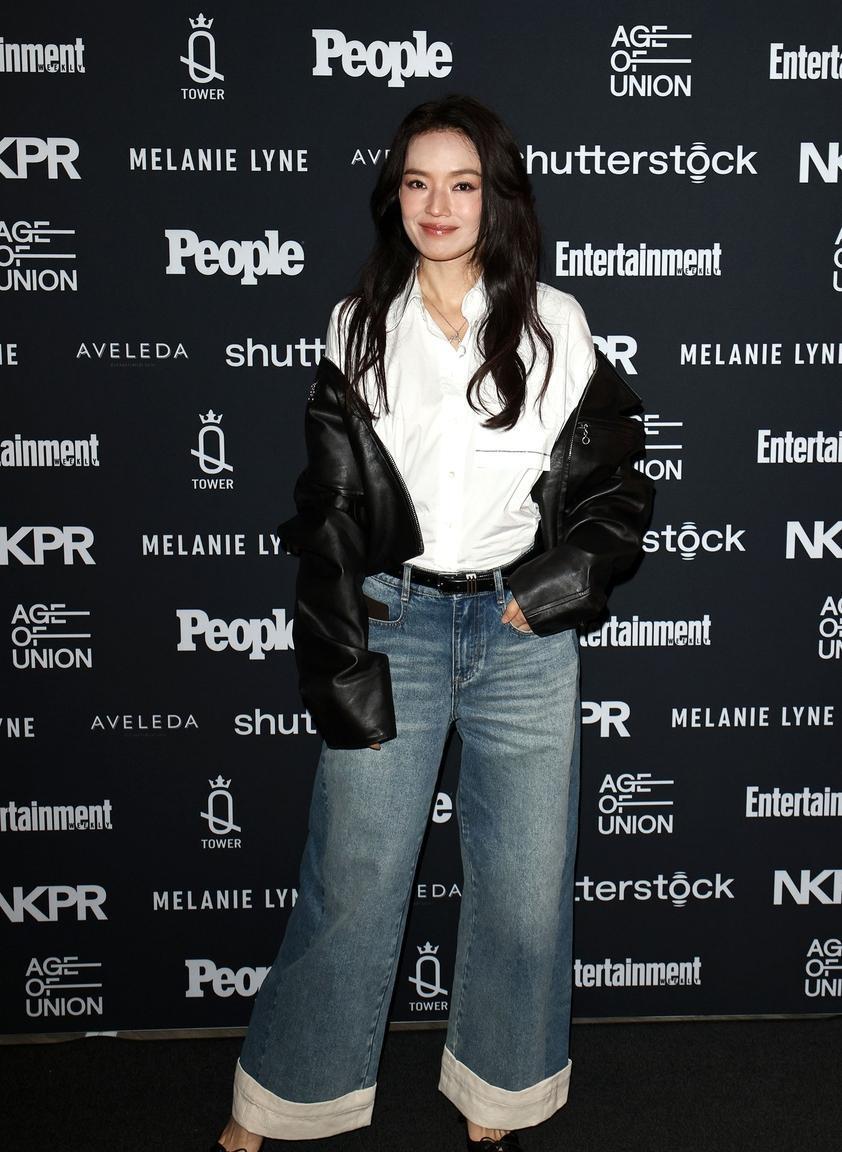 今日舒淇在宣传新片的时候搭配的很有潮流时尚气息,看上去也很迷人。 她里面穿白色衬衣,下身搭配潮流阔腿牛仔裤,展现出了完美的身穿比例。 她脚踩黑色高跟鞋,外面套装黑色的皮衣,像个酷酷的机车女郎,也格外的洒脱。 舒淇这次走混搭路线,尽显潮流洒脱的魅力,看上去格外的显年轻,也很有青春活力气息。 她留着超美的披肩长发,笑起来确实是特别的美,不得不说舒淇是个不老女神。