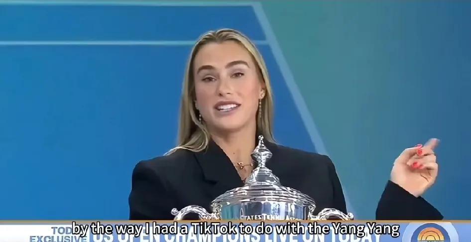 萨巴伦卡竟然“朱丹附体”,将阿尔卡拉斯说成辛纳。 美网两位冠军得主萨巴伦卡和阿尔卡拉斯参加节目录制,两人坐下聊了四五分钟,萨巴伦卡指着旁边的阿尔卡拉斯,口误说成了辛纳(美网决赛被阿尔卡拉斯击败),但是立马意识到了,捂嘴摸头略显尴尬,自己笑的前仰后合,全场爆笑,录制效果极佳。 朱丹当年把林允错认成林允儿,把古力娜扎和迪丽热巴姓名混淆,周丽娜说成张丽娜,让人大跌眼镜,也成了她自己的心魔。朱丹也没想到,自己的“成名绝技”被四大大满贯得主萨巴伦卡“模仿”,而且节目效果更佳! 萨巴伦卡的身体和状态,肯定还会统治女网至少五年,中国网球何时能有自己的萨巴伦卡?