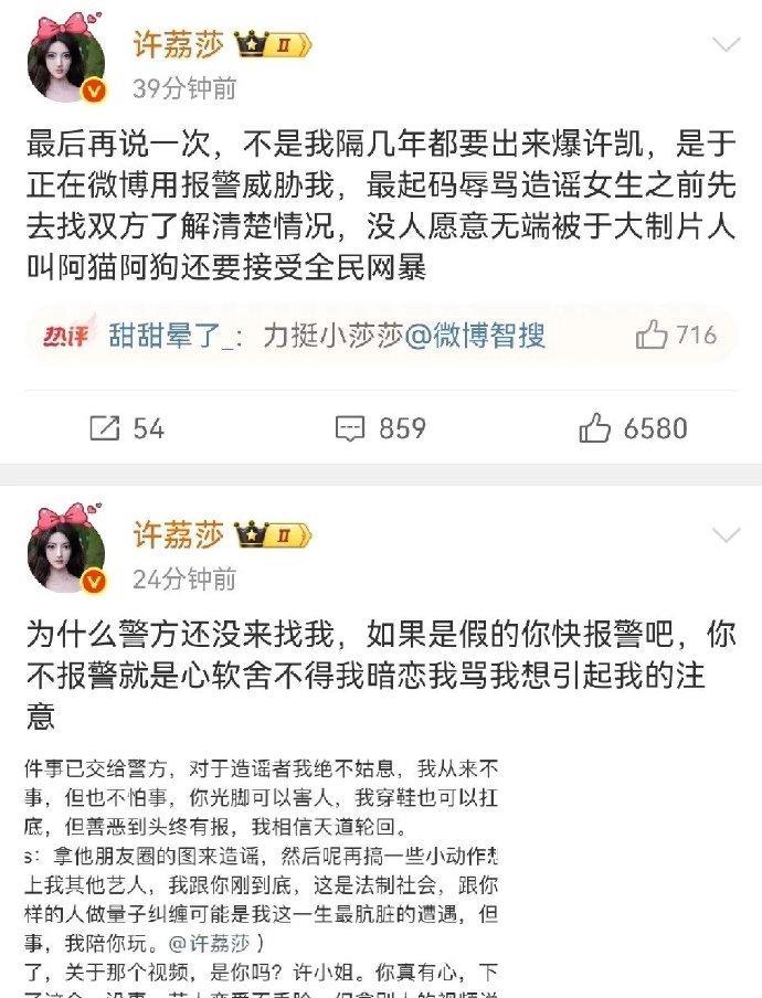 许荔莎说只要许凯一个道歉,可凡事都有代价啊。 这爆料一出,许凯三部待播剧都悬了,影响多大可想而知。 要是爆料是假的,一句道歉哪能了事?许凯名誉受损不说,剧方损失又咋算。 但要是爆料是真,那许凯更得付出代价。就这么轻飘飘要个道歉,这事儿哪能这么简单就揭过