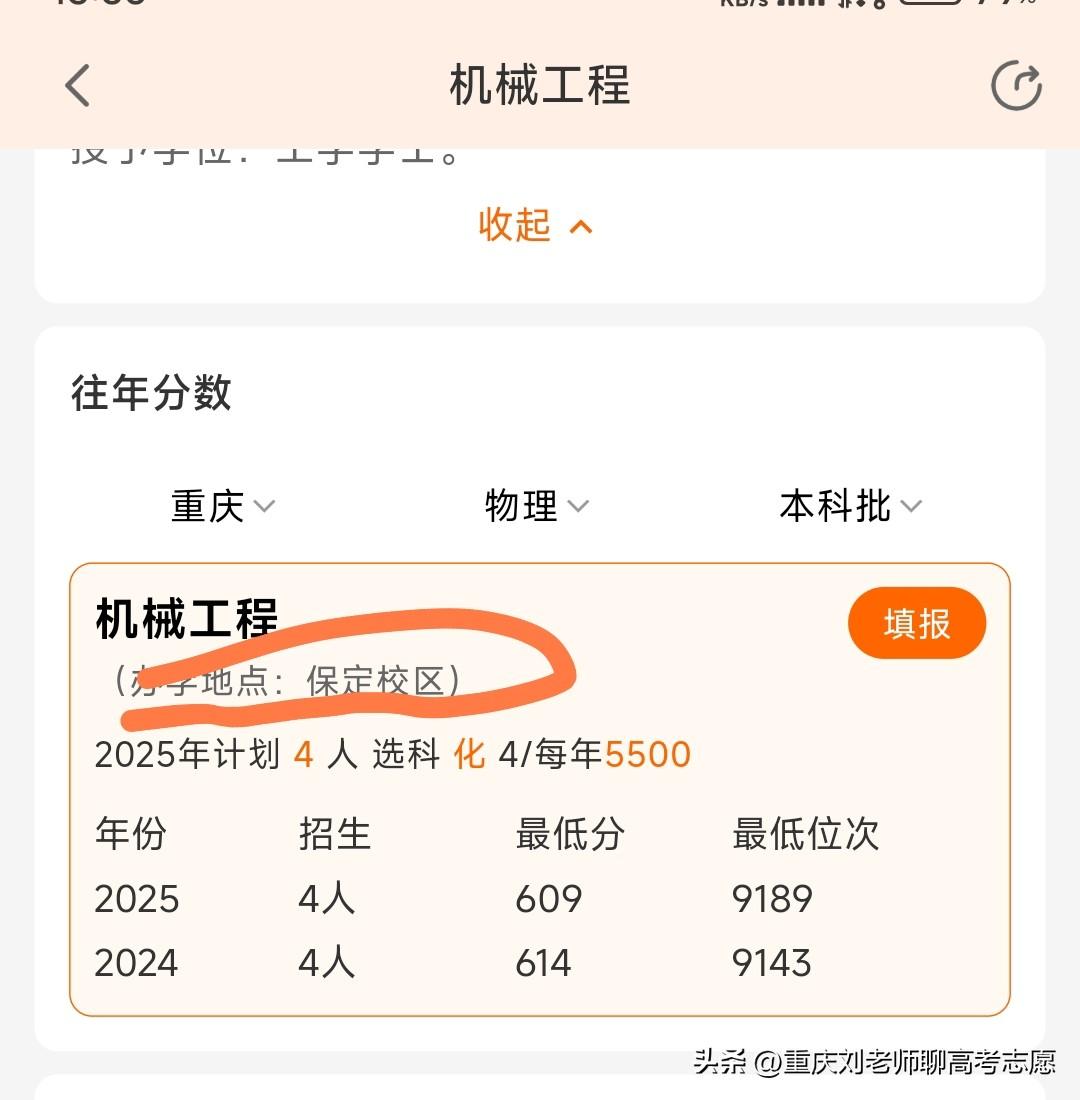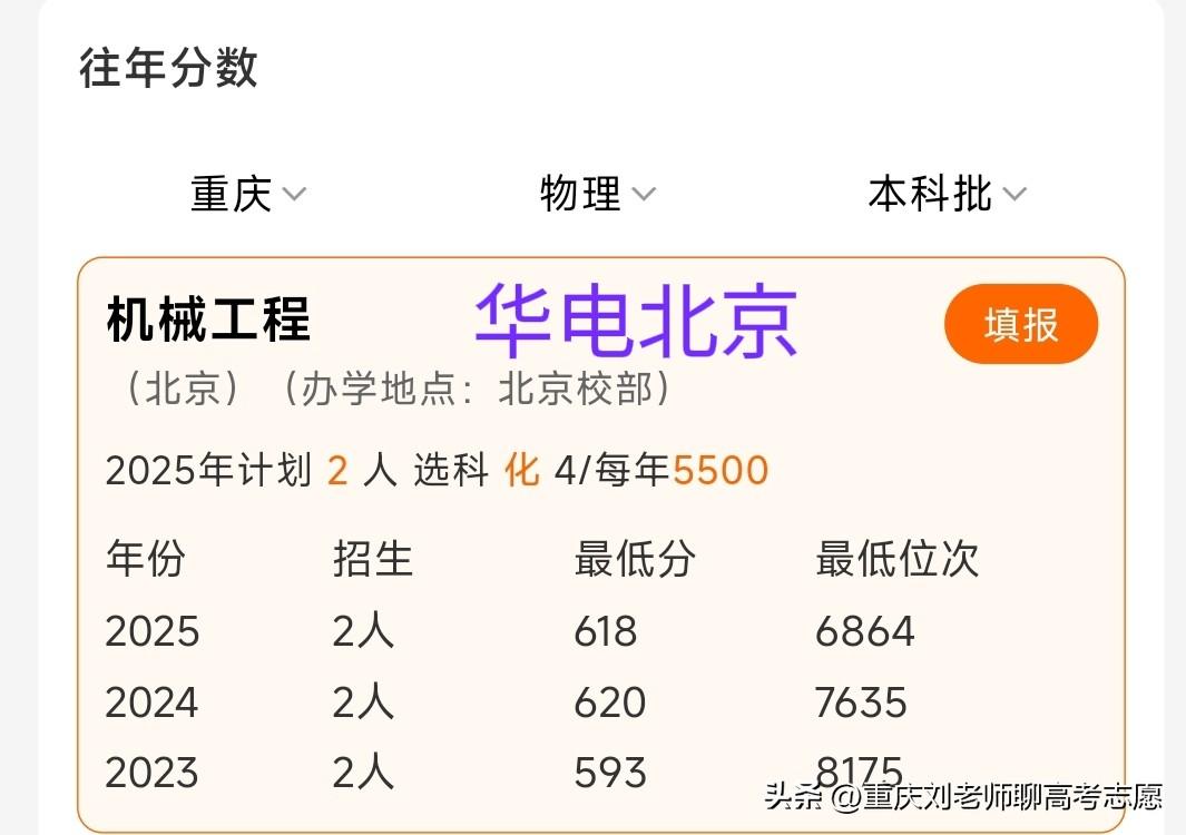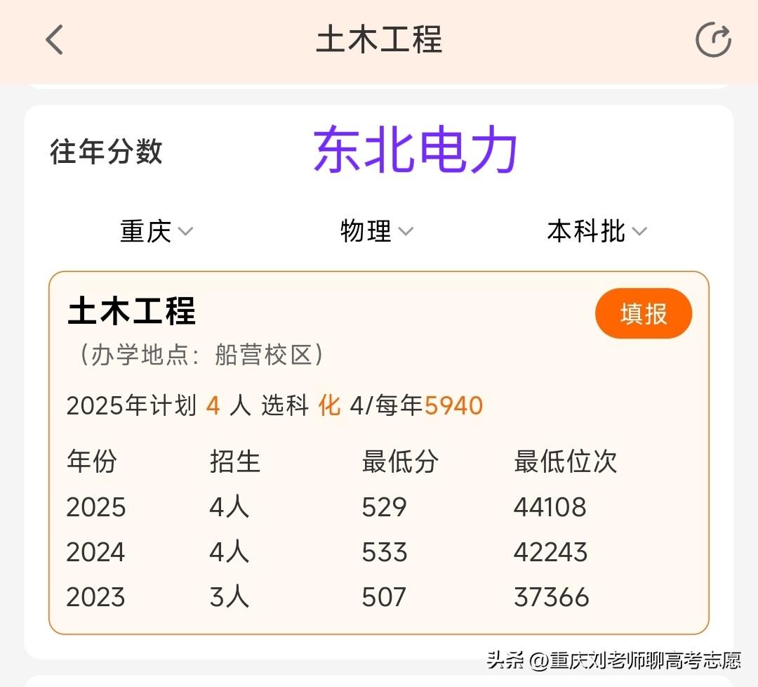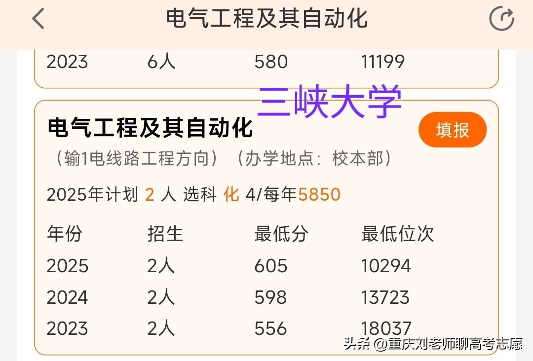 院校不同,专业不同,但有可能学到相同的专业方向,甚至该方向就业领域完全一致,但录取分/位次差距甚大! 比如,三峡大学/南京工程学院的电气,东北电力大学的土木,华北电力大学的机械工程,以上不同学校不同专业却都有一个共同专业方向:输电线路工程,但报考难度差距很大。 2025年重庆物理类,华北电力大学(北京)机械工程收分/位次最高,618分/6864位;华北电力大学(保定)机械工程609分/9189位;三峡大学电气(输电线路工程方向)605分/10294位;最低的东北电力大学土木工程529分/44108位。最高与最低差89分、37200余位,但输电线路工程方向这块就业差距不大,尤其是东北电力大学与三峡大学! 电气(输电线路工程方向)专业实际上是电气与土木,机械等几大学科交叉专业,简单说就是输电线路建设施工工程,主要课程实际上就是电气、土木两大块,比如电力系统,电磁场,高电压,输电线路设计,电力电缆,输电线路检修等,土力学,材料力学,理论力学,输电线路施工,输电线路工程预算,工程管理等等,还有输电线路设计,杆塔设计等。就业面向电力部门,尤其是供电,检修,送变电等公司,还有电建公司施工监理等,整体上就业质量还是不错的,只不过比较辛苦,出差,野外施工比较频繁,重庆作为山城,其能源需求能源建设潜力巨大,雅江水电站的建设也为该专业提供了巨大的就业需求,所以该专业非常适合家庭条件较差,想本科直接就业且能吃苦的男生。 总之,报考是非常值得研究的课题,或许不同分数的学生哪怕就读院校与专业皆不相同,但未来可能殊途同归。
