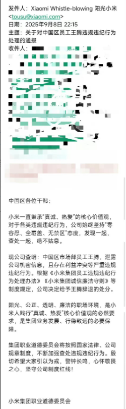 小米深夜爆雷,原来雷军早就不信任王腾了! 早在之前雷军就已经知道王腾“养不熟”,公然试探王腾,即使王腾立表忠心,也还是栽倒在一封泄密邮件中。王腾停更了10天,在8号深夜写了一封道歉信,他有句话很有意思“过去犯了一些错误”,说明这些事不是现在干的,只是现在才被发现。 在网络上,很多网友说在小米公司了,王腾的话语权比雷军还要强大,在公司做到了“北帝”的位置,这个职位泄密和辞职已经很小问题,重的话都可以去踩缝纫机了!但是只以“辞退”和发道歉文处理,只能说雷军还是念旧情,给足了最后的体面,虽然早就不信任了,但小米有今天,王腾有功不可没的功劳。