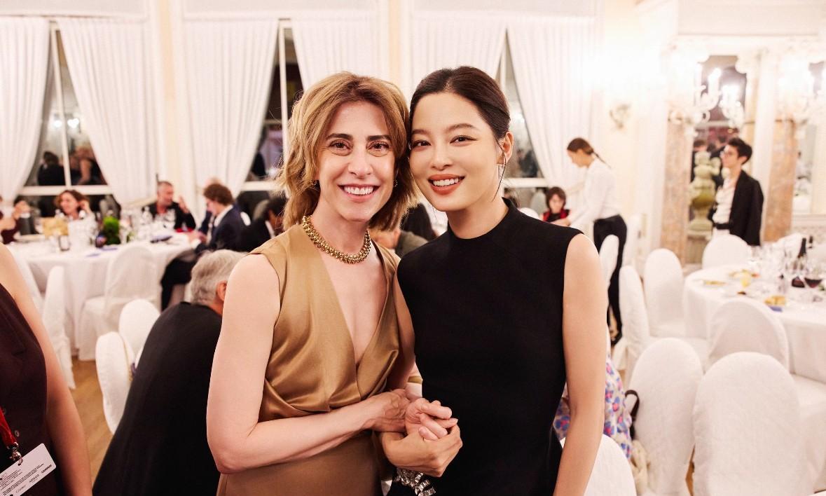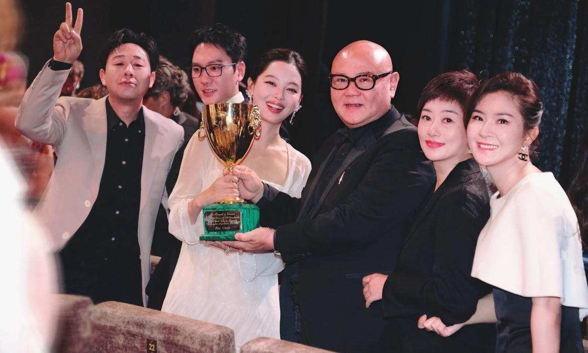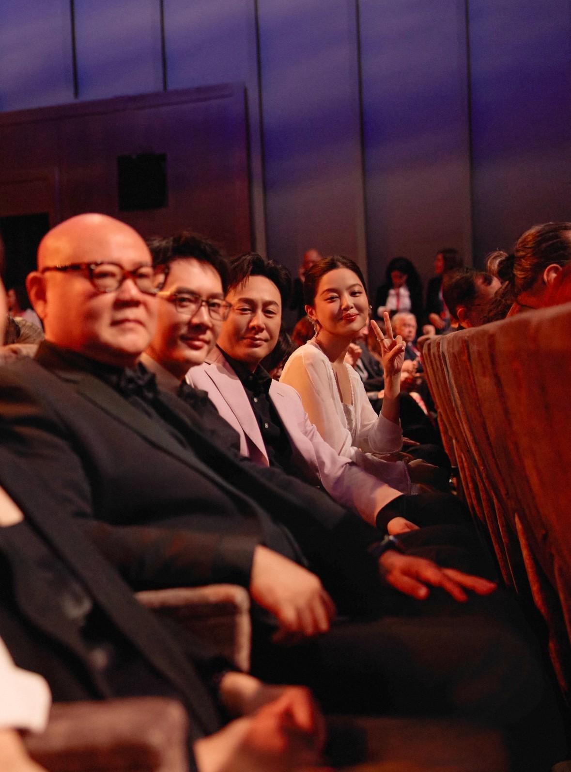 辛芷蕾拿奖现场和张颂文同框比耶! 穿高定礼服领奖时气场全开,转头就和张颂文等人贴