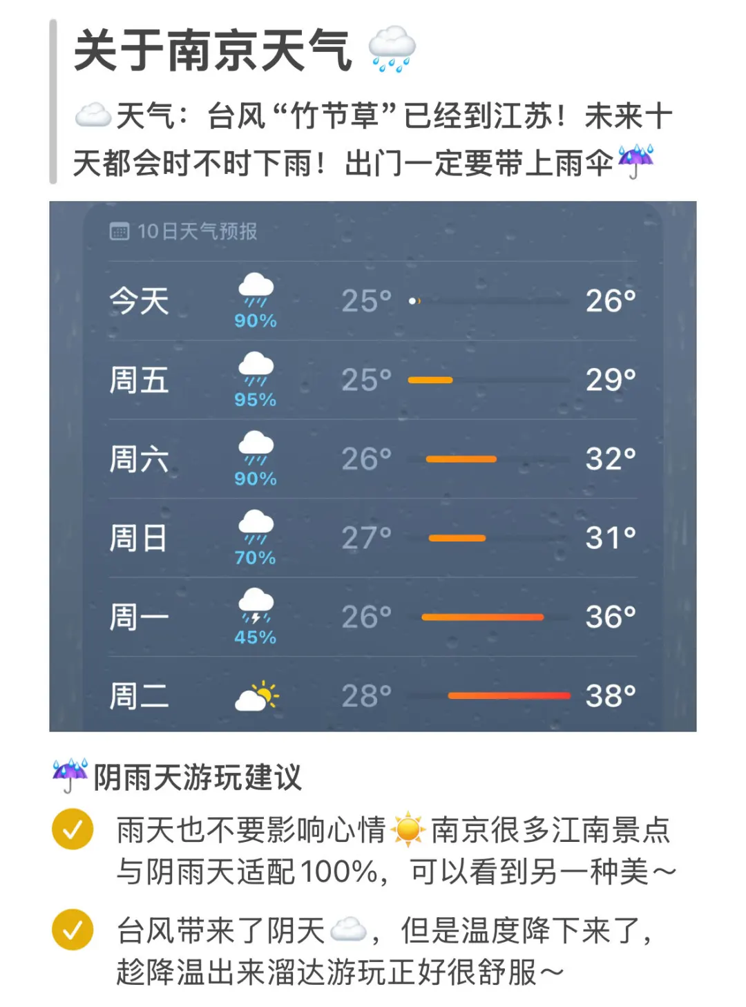 最近受台风竹节草影响南京开始一直下大雨了,但是来南京玩的姐妹也不要不开心!