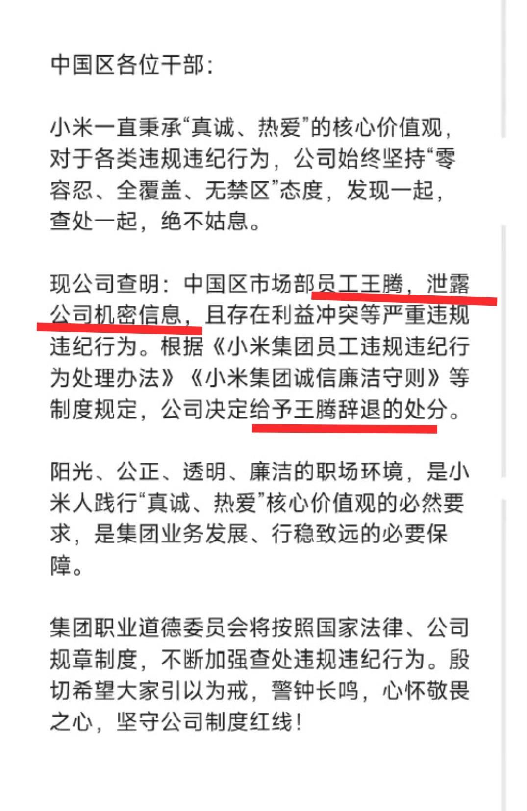 一觉醒来,雷军天塌了, 不是因为小米出了什么问题, 而是因为好不容易高薪聘请的人才王腾居然叛变,泄露公司机密, 王腾16年加入小米,后因表现出色迅速成长Redmi总经理、中国区市场部总经理,没想到做到这个职位的人还会叛变, 泄露公司机密本就是非常严重的事情,而且小米说了还造成利益冲突,估计雷军损失不少钱,给王腾辞退已经很宽容了, 不知道这样的尖端人才以后出来单干会不会再和小米做对,成为竞争对手,大家怎么看?#小米王腾# #雷军#