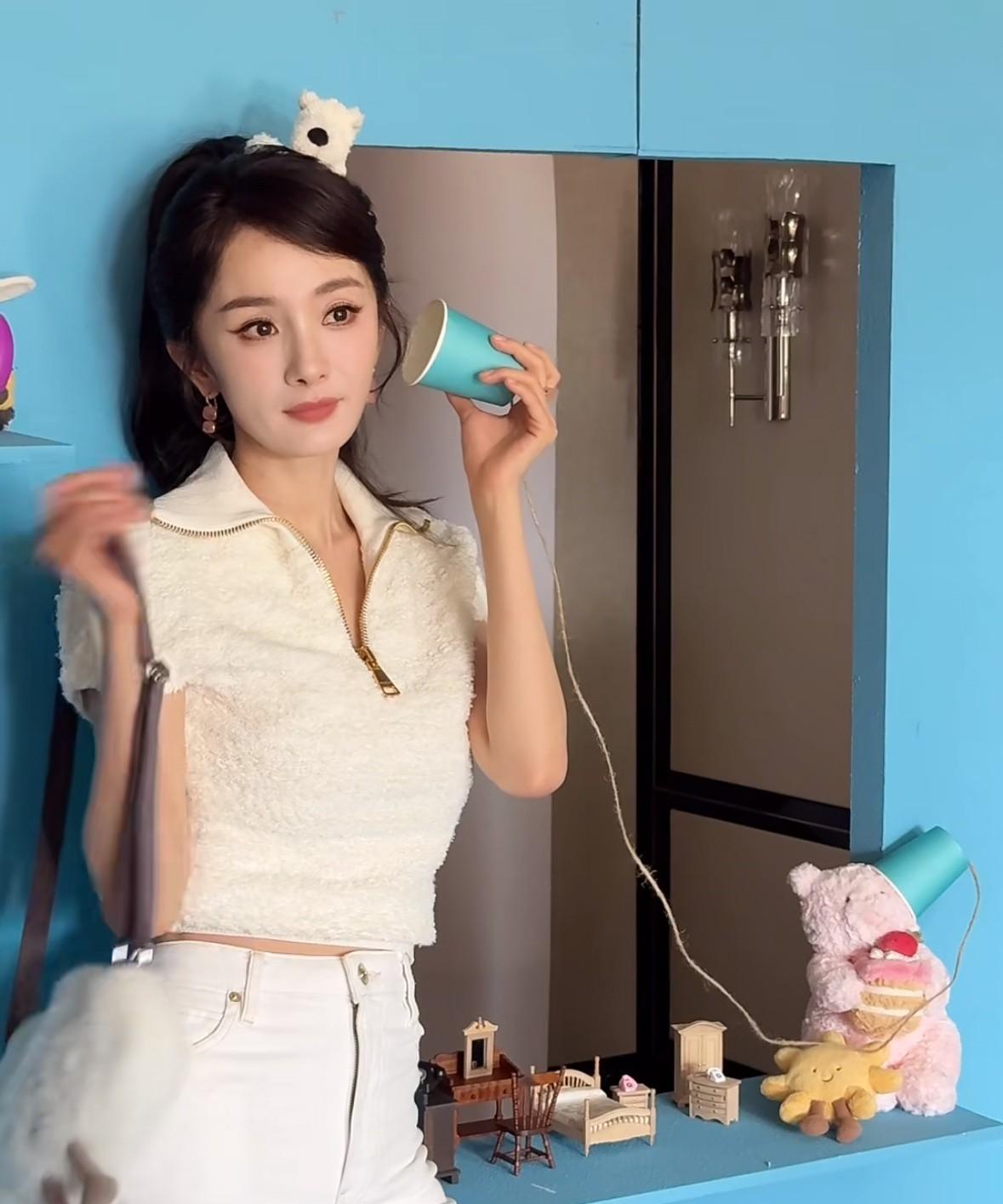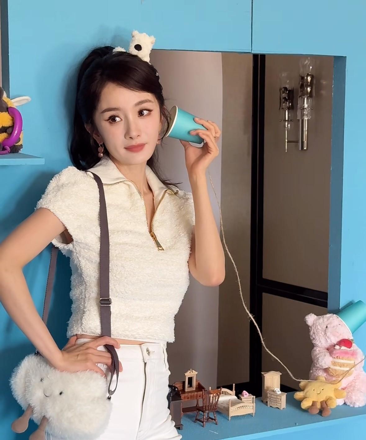 不得不说,杨幂扎高马尾配萌系发饰绝了! 一身全白look搭可爱小狗发饰,在童趣感拉满的场景里玩纸杯电话、捣鼓迷你摆件,活脱脱是刚入学的元气学妹!谁能信她马上奔四了,这少女感直接把时光按了暂停键,这样的杨幂你不爱吗?#杨幂# #杨幂美照#