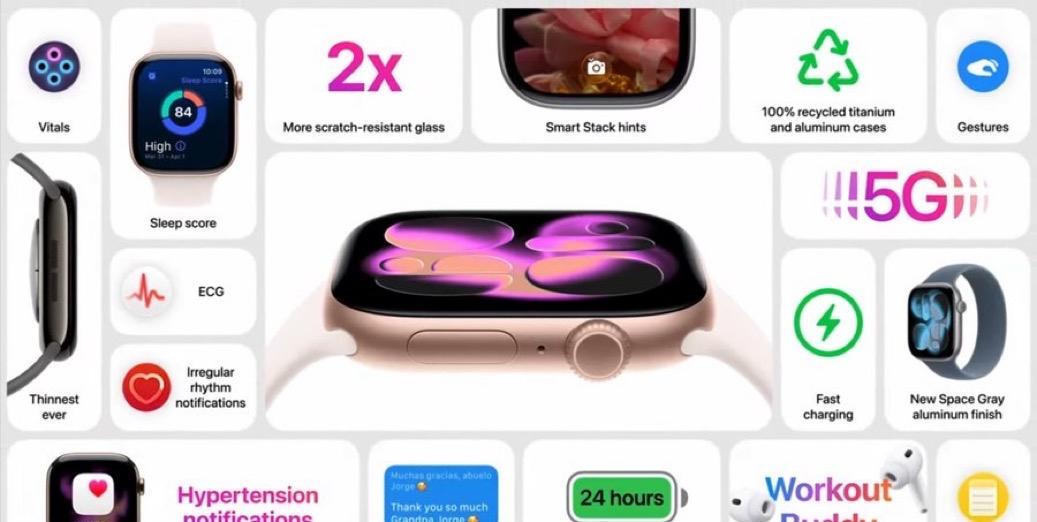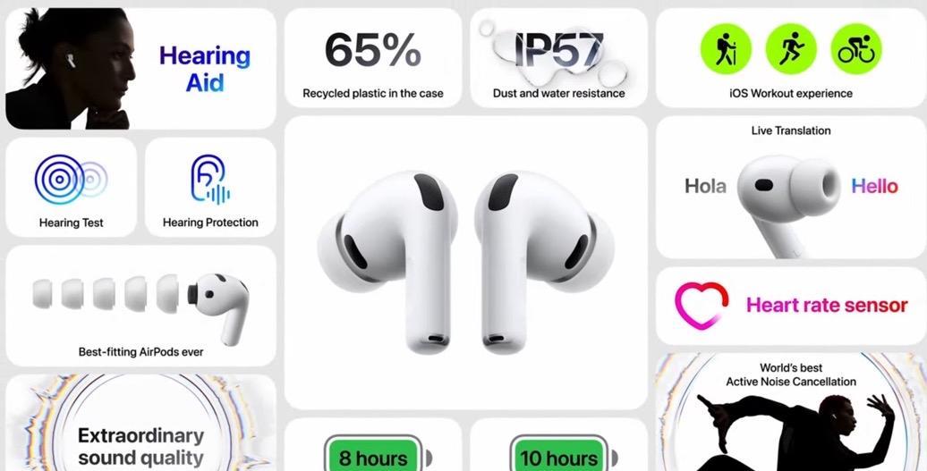 苹果发布 AirPods Pro 3。图1-6 Apple 的 Airpods Pro 3 使用 AI(Apple Intelligence)来翻译不同的语言。 如果两个人在使用时使用不同的语言交谈,该设备将翻译成他们喜欢的语言。 苹果发布 Apple Watch Series 11(图7-12) Apple Watch Series 11 将支持参与的电话服务提供商的 5G。 Apple Watch SE 3 的功能。(图13)