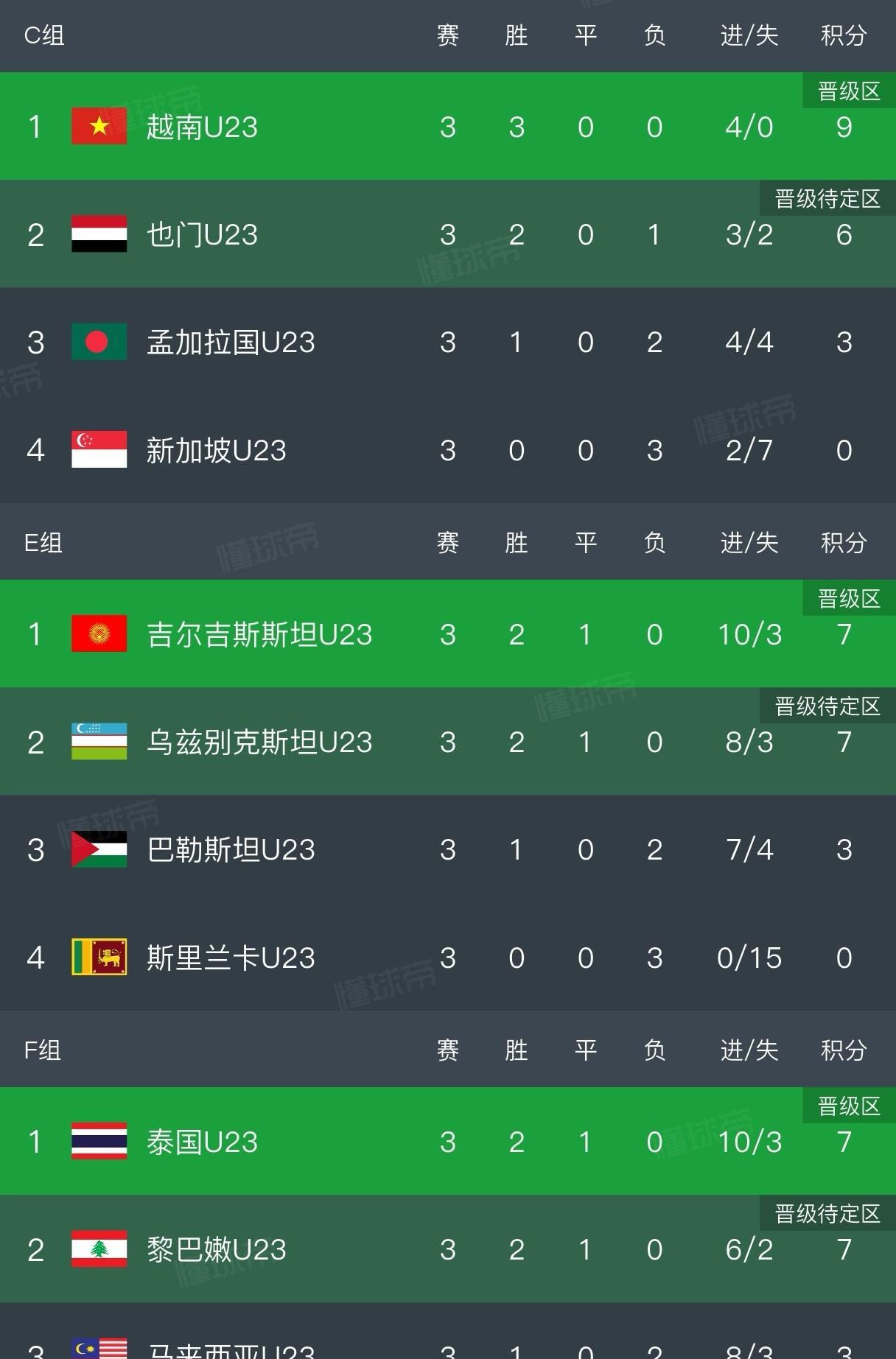 U23亚预赛尘埃落定,谁最幸运,谁又抱憾? U23亚洲杯预选赛昨夜全部结束,中国队昨晚0:0战平澳大利亚后拿到最好的小组第二,顺利出线。那11个小组第二中,谁最幸运,谁又最遗憾呢? 最先拿到7分的是乌兹别克斯坦和黎巴嫩,他们两个小组基本上确定了两个7分的局面,不过乌兹别克斯坦也是最后时刻2:1绝杀巴勒斯坦,惊险晋级。在国足出线后,这两个组的吉尔吉斯斯坦轻取斯里兰卡毫无疑问,而泰国因为开球晚,但也是补时绝杀马来西亚,拿到7分。 这样其实在国足比赛结束后,基本上就有3个小组第二拿到了7分,给后面出场的球队很大压力,几乎同时开赛的越南本来还比较和谐,但看到7分太多也是不敢怠慢,1:0击败也门头名出线。这样只有约旦组和阿联酋组可能出现2个7分的局面。约旦率先击败土库曼斯坦打破平衡,而此时印度虽然6球大胜,但也只能停留在6分。此刻的阿联酋轻松很多,他们一度0:3落后伊朗,最后2:3结束,因为手握10+的净胜球和6分,所以铁定出线。 这样看最幸运的说是阿联酋也不是,更应该是绝杀出线的泰国和乌兹别克斯坦。最遗憾的应该就是剩下几个6分球队了。