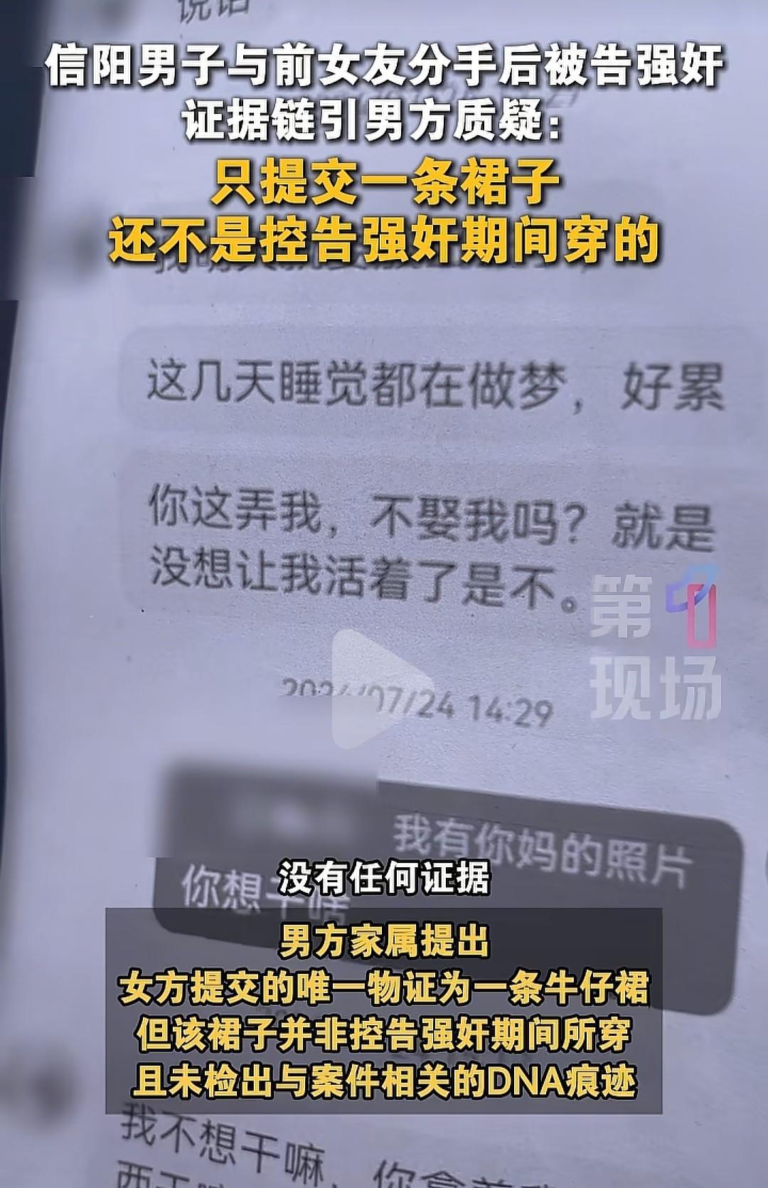 大同强奸案已经成为版本。信阳男子与女友因彩礼分手后被告强奸,已经羁押超一年,证据链引男方质疑。 信阳的卢某与梁某恋爱3年,2024年两人到了谈婚论嫁的时候,女方要几十万彩礼,一套别墅,男方认为太多,无法满足,于是男方提出了分手。 分手后女方曾提出复合,卢某不同意,同年8月,梁某以被强奸为由报警,卢某随后被采取强制措施,截至目前已羁押13个月。 女方说卢某分手前强奸了她7次,男方质疑其真实性和目的性,认为如果真是强奸,一次就该报警了,怎么可能强奸7次,无非是目的未达到反咬一口。 另外,女方提交的证据是一条牛仔裙,男方说这条裙子并不是控告强奸期间所穿的,且未检出与案件相关的DNA痕迹。 看两人分手时的聊天记录,女人还在逼男生娶她,并且怨气很重。 看到这一幕是不是感觉似曾相识,与大同订婚强奸案如出一辙,都是目的未达到之后的告强奸。 很多网友担心,这以后谁还敢谈恋爱?未达到要求就送男生进监狱,即使最终强奸不成立,对男人的影响还是挺大的,而且这类案子,无罪的诉求微乎其微。 也有很多网友认为,女权已经到了鼎盛时期,判重点也无妨,这样能一下子导致女权的反噬,倒霉的不是只有男人,平衡方可持久,不平衡定是灾难,倒霉所有人。 这样也会导致,第一,男人在婚前绝对不会为女人花太多的钱。第二,不会轻易出彩礼了。第三,男人结婚意愿大大降低。这样才能反噬女权。 也有网友认为,这种女人很少,但被哪个男人碰见了,就百分百完了,而且对社会的破坏性非常大。 如果无能为力改变现状,只有让社会自动调节,物极必反,会找到平衡点的,就是代价有点大。还是希望司法部门能根据恋人的交往情况作出更有力于社会发展的判决。