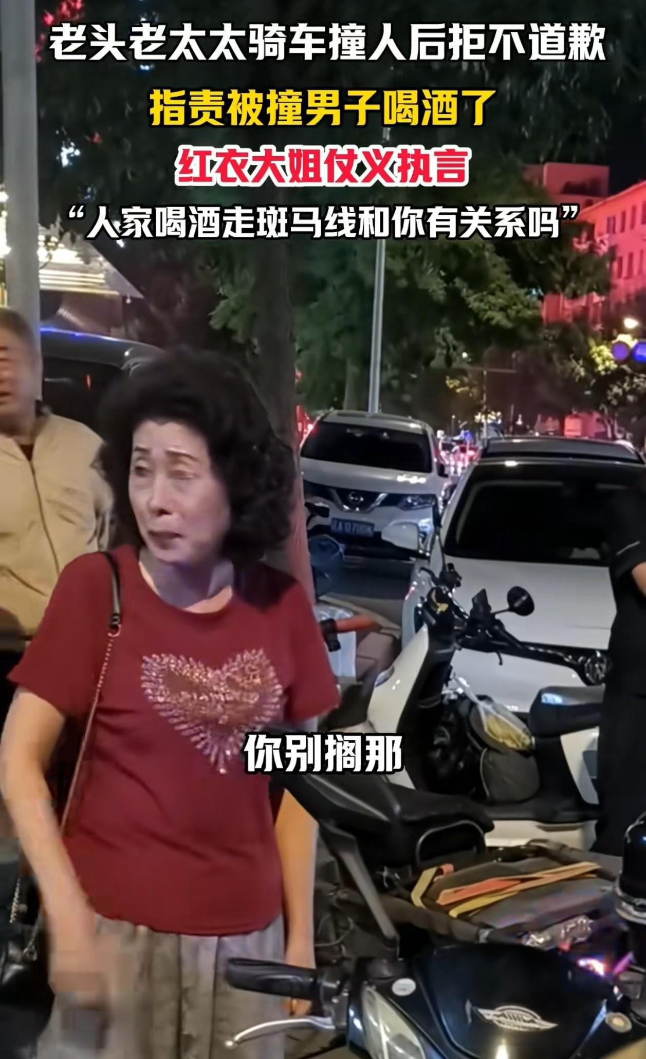 喝酒还不让走路了? 近日,辽宁沈阳,男子正常马路,被一老太太骑电瓶车撞了,男子没啥事,老太太却一屁股坐在了地上,对着前来处理的帽子叔叔说,男子喝酒了,在大马路上摇摇晃晃的,他酒后走路。 男子一听都无语了,难道现在喝酒后不让走路了,而且他还是走的斑马线,反而老太太不戴头盔,还搭人。 于是老太太赶紧说,她有脑出血,刚从医院出来,等会儿她身体出毛病了,男子是有责任的,这话一出连旁边的大姐都看不下去了,让她别搁那啥的,这么多人看着的,再说揍你啊! 也是长见识了,骑车的给行人撞了赖行人喝酒,不过这红衣大姐太有意思了,看不下去都想揍人了,还得是大姐给力,怼的大妈无话可说!