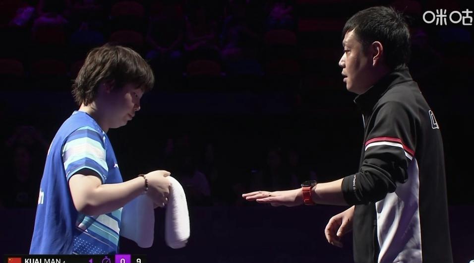 让一追三!蒯曼淘汰朱芊曦,下轮对垒伊藤美诚 9月10日上午,WTT澳门冠军赛女单1/16决赛,中国选手蒯曼对垒韩国选手朱芊曦。邱贻可担任场外指导。 这是WTT赛事首次交锋。 第一局,蒯曼不太适合朱芊曦的打法,以1比5落后,战至4比10,虽努力追赶,仍以6比11失利。 第二局,一波三折。4比4。蒯曼连得5分,打成9比4。朱芊曦连得4分,将比分逼近为8比9。蒯曼暂停,回场后拿下关键两分,以11比8扳回一局。 第三局,蒯曼掌握局势,顶住朱芊曦的反扑,以11比6再扳一局。 第四局,朱芊曦背水一战,蒯曼士气正旺。3比3开局。蒯曼一个擦网球得分,4比3领先。朱芊曦暂停,回场后被动局面反而恶化。蒯曼将比分扩大为8比3。10比4,蒯曼手握6个赛点。朱芊曦如梦初醒,追至7比10。蒯曼再不给机会,以11比7拿下。 至此,蒯曼以总比分3比1淘汰朱芊曦,1/8决赛将对阵日本选手伊藤美诚。