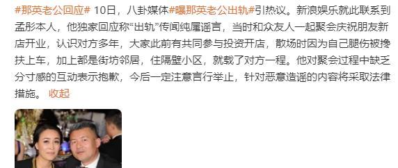 其实,那英老公有没有做对不起自己的事,她比谁都明白。 像那英和王菲这种级别的巨星,身边有最强团队,口袋里有大量金钱,如果另一半出轨,她们不可能不知道,除非恋爱脑。但她们不是二十多岁的女生,是将近60来岁的花甲老人,对待感情早已很理性。 那英老公否认自己CG,当时只是和一众友人聚会,散场时因为腿伤被搀扶上车,而那女子住隔壁小区,顺路就载了一程。 男方作出回应,而女方还没有动静,那我们就相信吧,真相是什么,天后心里一清二楚。 #你能接受小学老师转岗教高中吗#