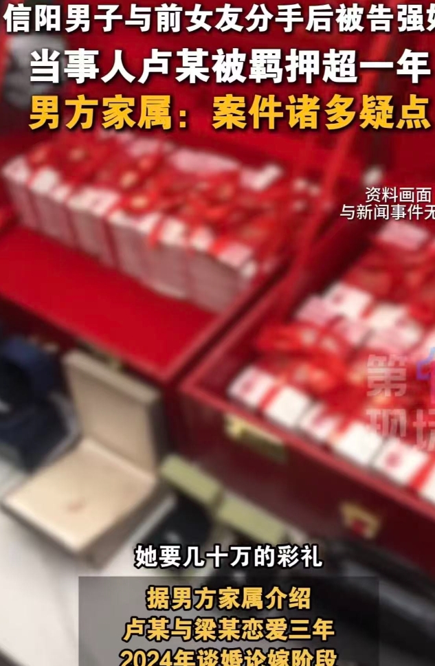 河南信阳,男子与女友恋爱三年,准备结婚之际,女方提出要一套别墅和几十万的彩礼,就此两人因彩礼事宜未达成一致导致分手,分手后女方后悔提出复合,男子没同意,谁知女方竟以强 奸为由,把男子给告了,说自己分手前7次都是被强迫的,男子随后被采取措施,至今已经羁押13个月。男子家属:第1次的时候你怎么不说?要等到没有满足你条件之后才说,希望能还原案件真相,还男子一个清白!
