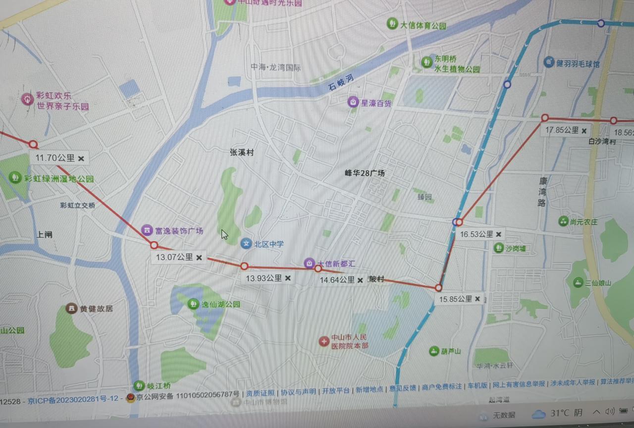 中山地铁3号线自制规划图 线路名称:中山地铁3号线 起止点:容奇渡口-龙石 站点数量:25站 总里程:49.7公里 最高速度:80公里每小时 车辆编组:6A