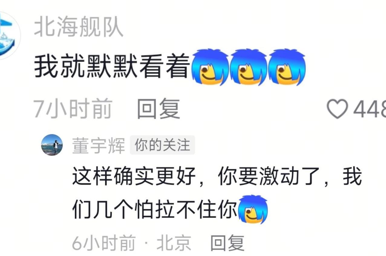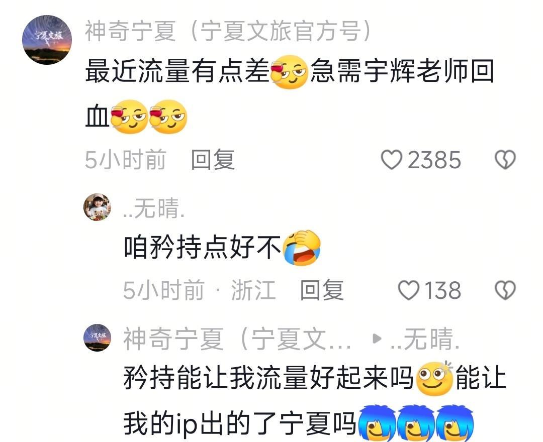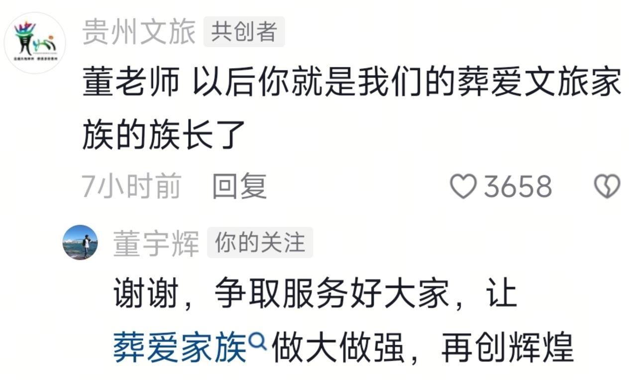 哈哈!怪不得董宇辉会生气到要掀桌子!自己啥也没干,竟然被文旅中国组团蛐蛐!不仅被贵州文旅送了一个外号,还惊动了军方[笑] 董宇辉一觉醒来天都塌了。真是万万没想到,自己竟然被文旅天团中的老大文旅中国组团蛐蛐。 看热闹不嫌事大的还有被董宇辉偏爱的云南文旅,被他称为“小心肝”的甘肃文旅,再加上贵州文旅。 其内容还是前些天上了热搜的“杀马特”梗。 天哪,这官网也那么不正经的吗?[我想静静]全国文旅全部都是杀马特的造型,而一身正装的董宇辉,却跳着最妖娆的舞蹈。 这个视频一出来,引起了大家热烈围观。全国文旅闻风而动,连以前很少刷到的地方文旅都在评论区积极发言。 这个视频董宇辉本人也刷到了,他说:刚睡醒,天塌了。 而甘肃文旅回答:我没有一丝丝推波助澜[我想静静][我想静静] 你还没有推波助澜,你是始作俑者吧?怪不得宇辉说要把你取关[笑] 看着那个五颜六色的杀马特造型,贵州文旅更是在评论区说:董老师以后你就是我们葬爱家族的族长了。 葬爱家族都能想得出来,贵州文旅真是人才呀。 董宇辉也搞笑回复:谢谢,争取好服务好大家,让葬爱家族做大做强[我想静静] 要说文旅中国的这一操作引来其他文旅的捧场,倒也不奇怪。毕竟作为中国文旅界的老大,号召力还是在的。 但是这一个视频却摇来了各行各业的人物,中国石化,中国邮政……最让人想不到的是,还惊动了军方。 北海舰队都在评论区留言了:我就默默的看着。 “默默”两个的,董宇辉理解得很透彻:确实你这样确实更好,你要激动了我们几个怕拉不住你。[我想静静][我想静静] 为什么文旅中国要组团?还是宁夏文旅一语道破了天机:最近流量不太好,还得来找董老师回回血[我想静静][我想静静] 董宇辉是怎么也没想到,这个教师节过得太别致了,终生难忘。